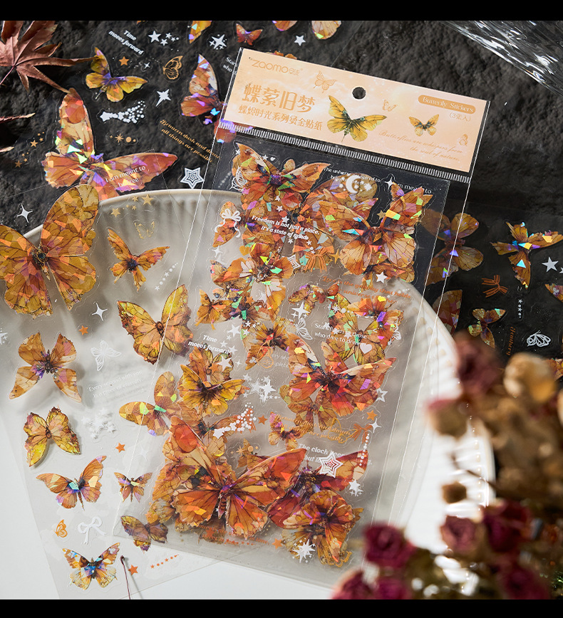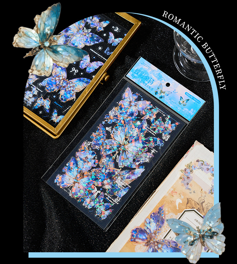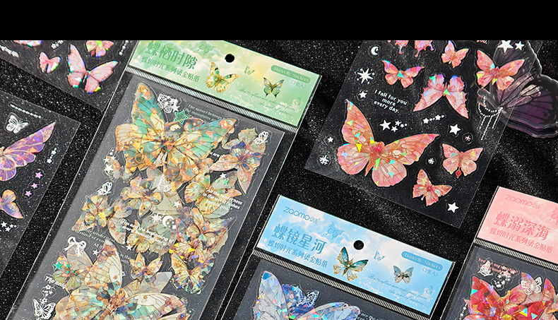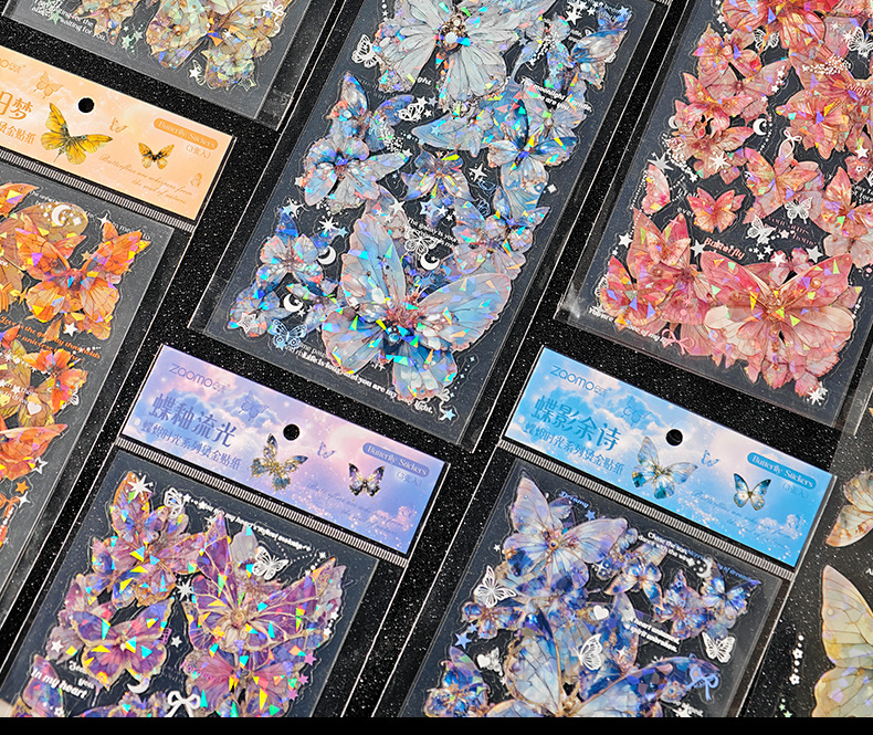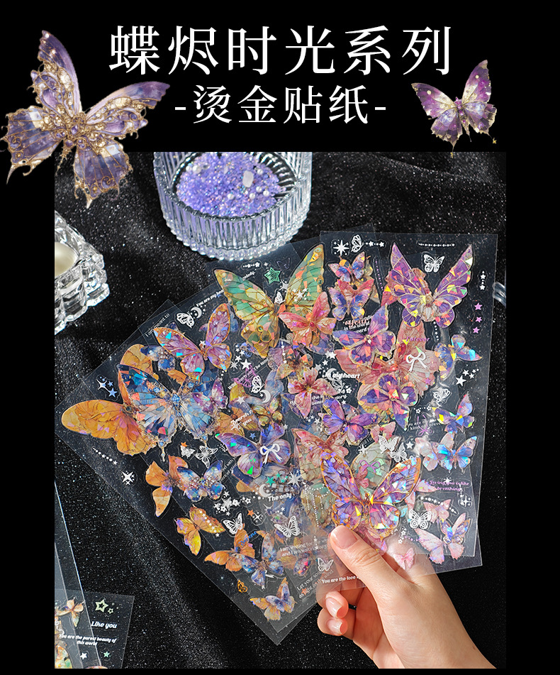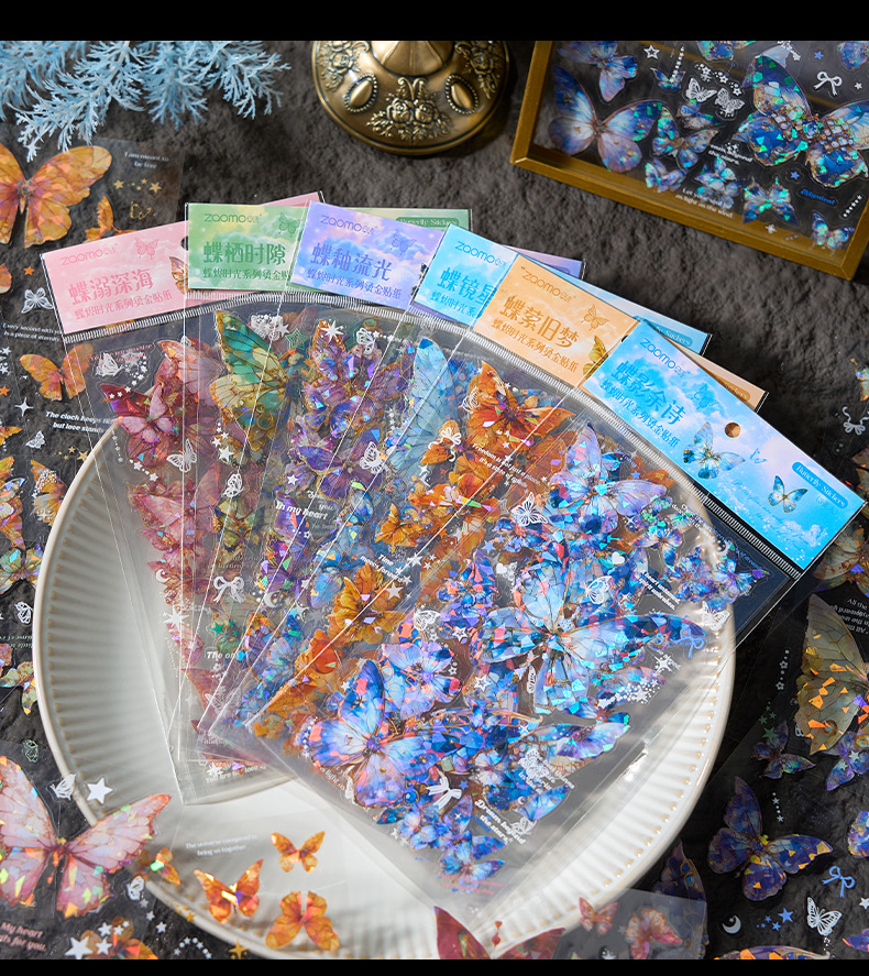 Bolsa de pegatinas de corte de espuma temprana, serie de tiempo de cenizas de mariposa de alto valor de cara, tiendas de mano de mariposa DIY, pegatinas de materiales decorativos