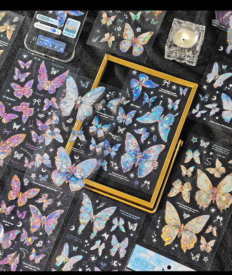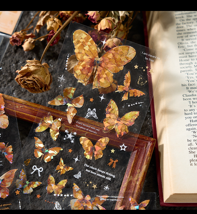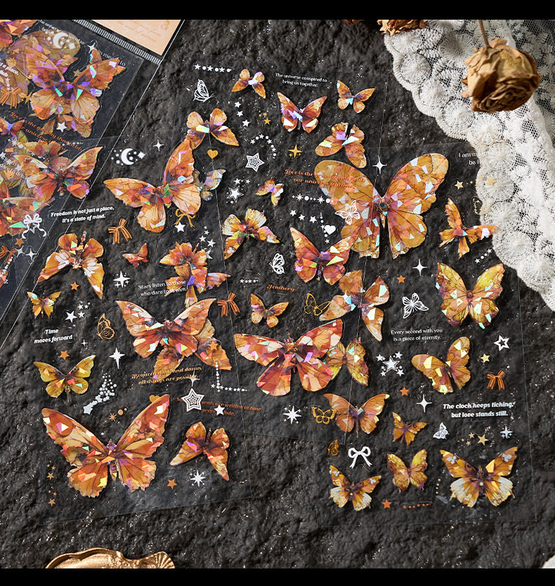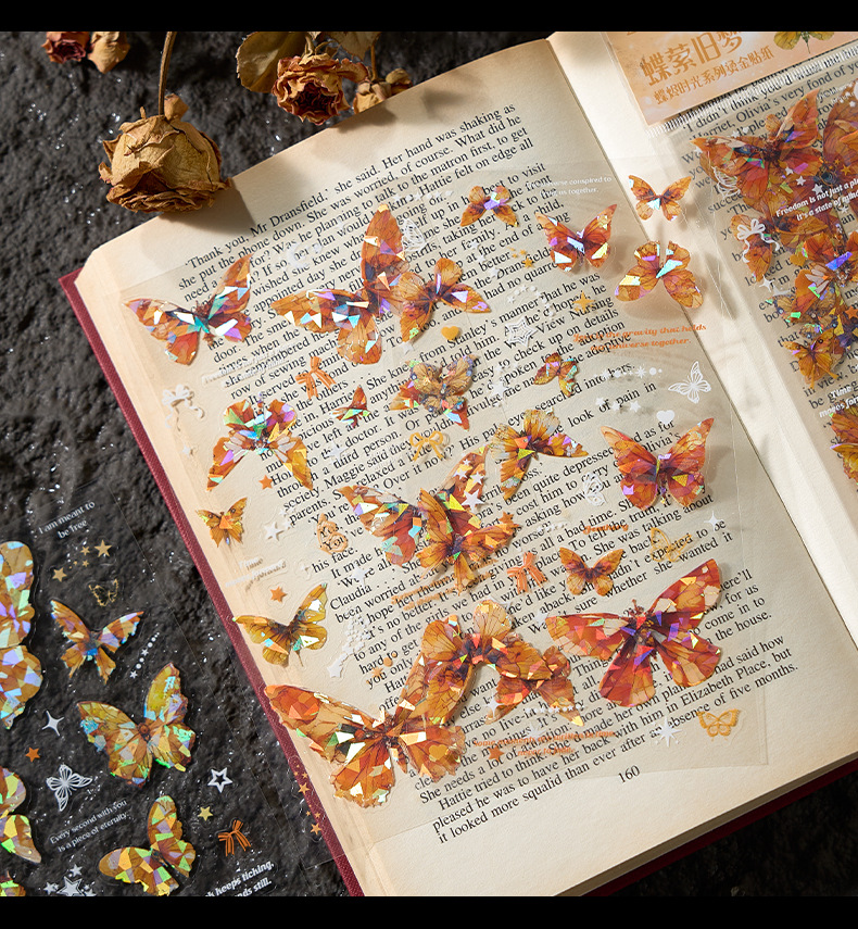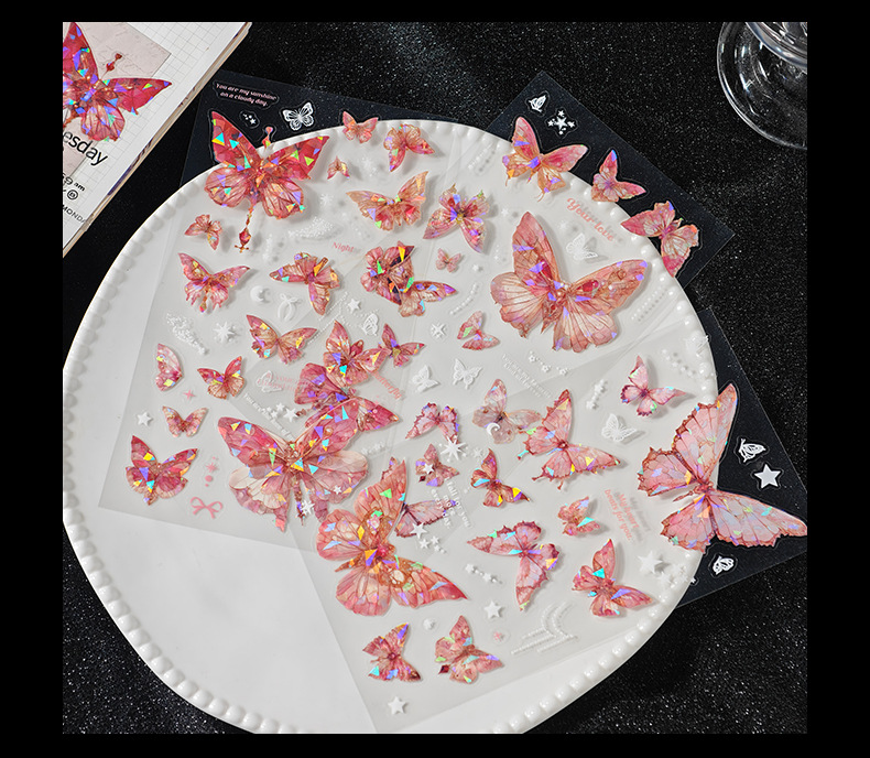 Bolsa de pegatinas de corte de espuma temprana, serie de tiempo de cenizas de mariposa de alto valor de cara, tiendas de mano de mariposa DIY, pegatinas de materiales decorativos
