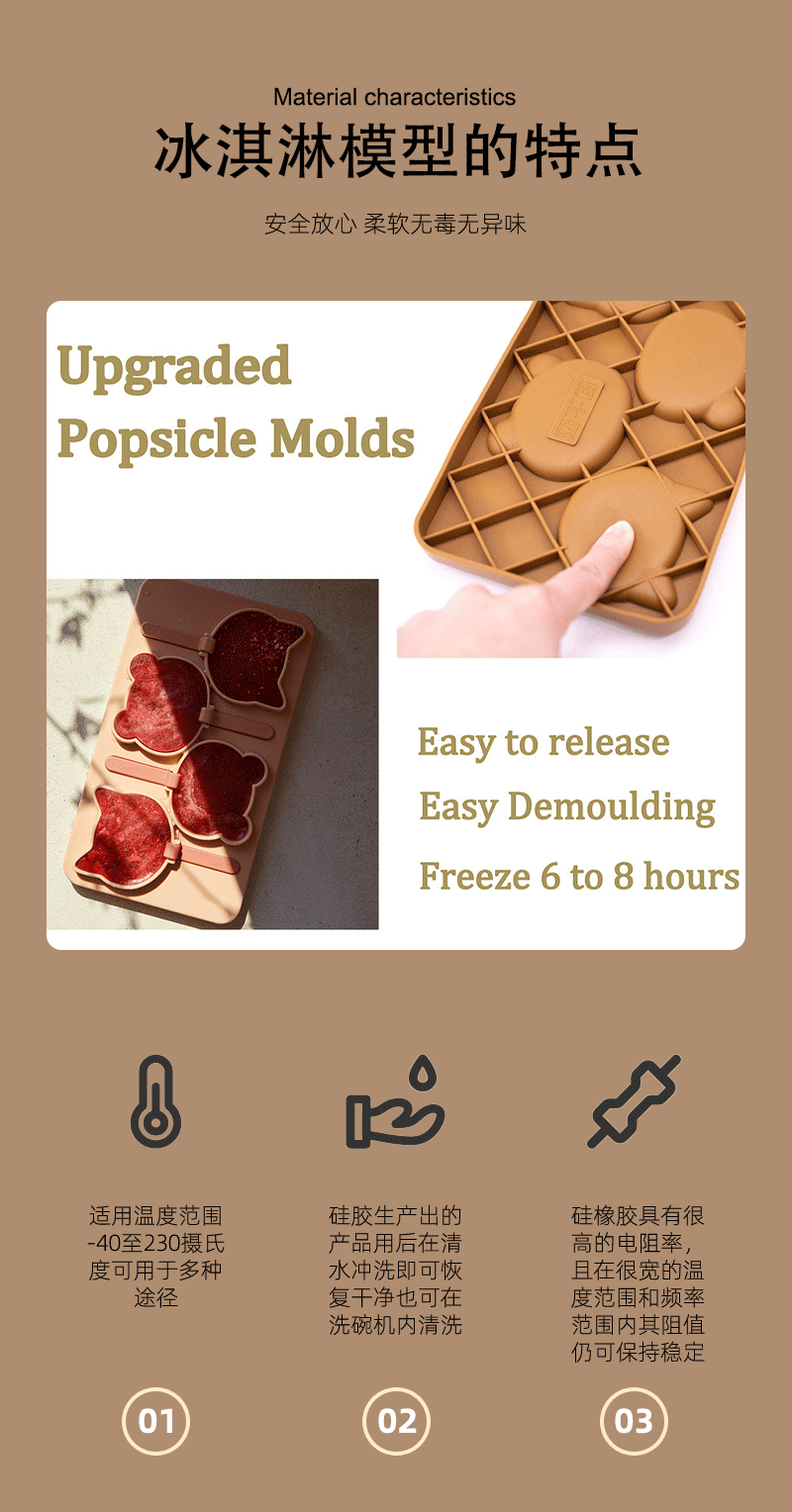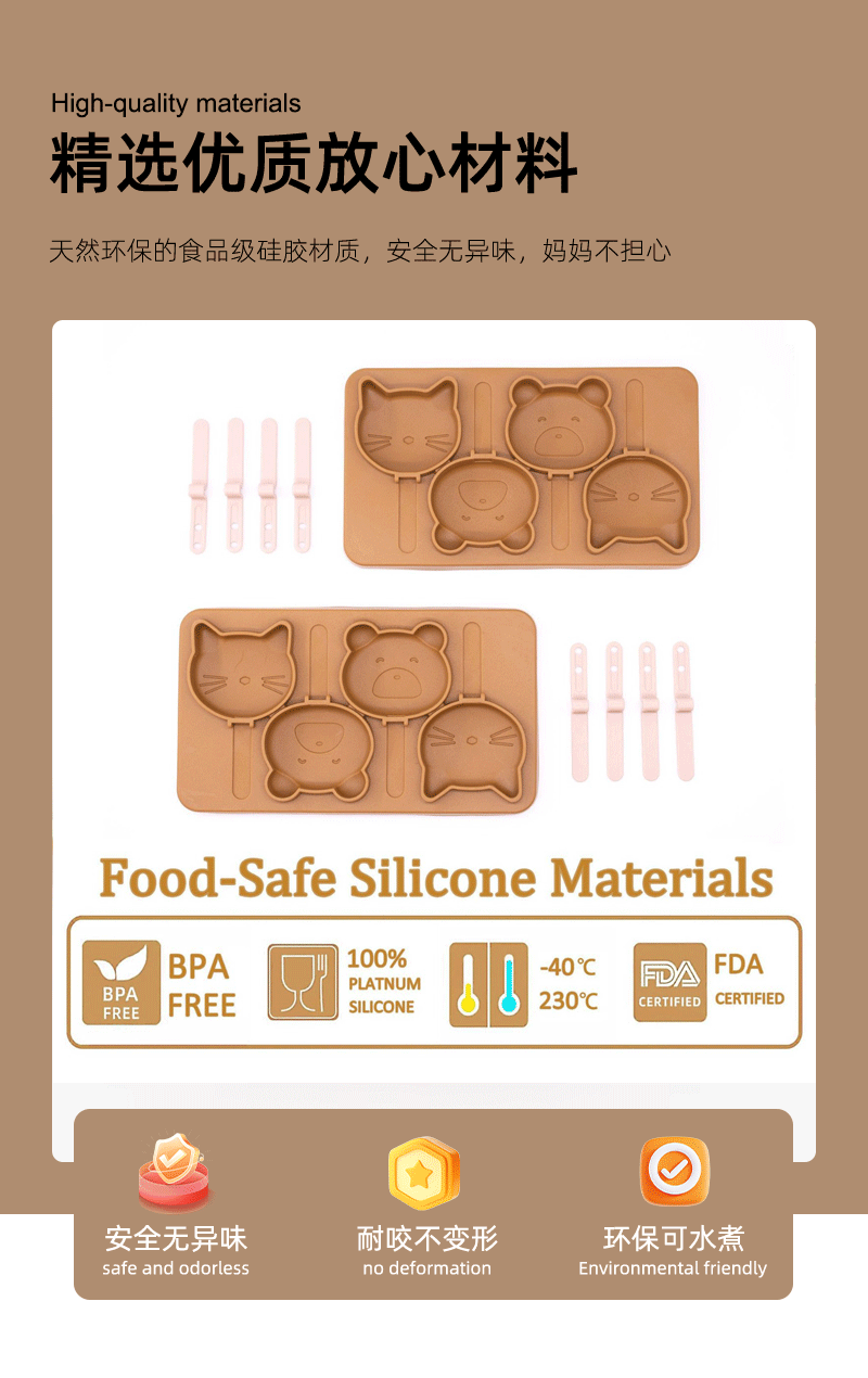 Molde de helado de silicona de grado alimenticio hecho en casa helado de helado helado de helado de dibujos animados para niños modelo de palitos de queso