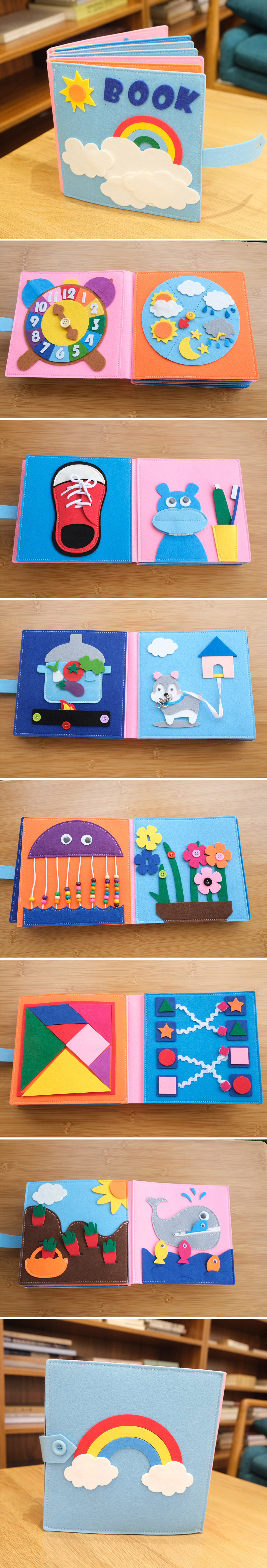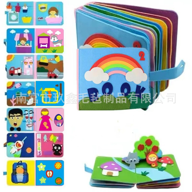 Transfronterizos bebés y niños pequeños estereoscópicos 12 páginas fieltro libros de educación temprana ayuda educativa juguetes para bebés ocupados fábrica mayorista de tablero
