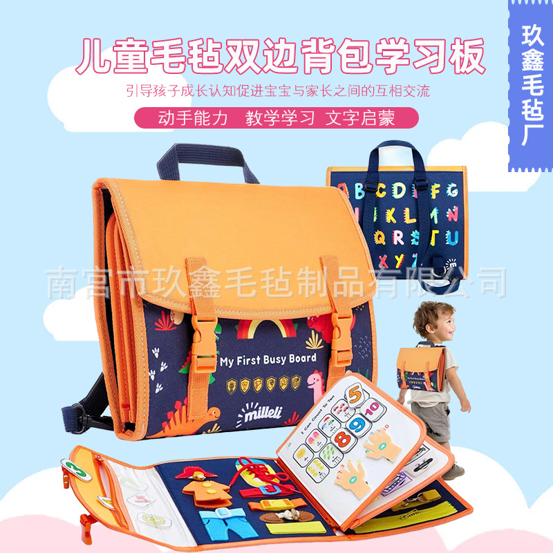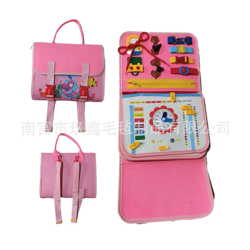 Fábrica de sentido común al por mayor ropa cremallera juguetes fieltro libro tablero de fieltro portátil tablero ocupado portátil