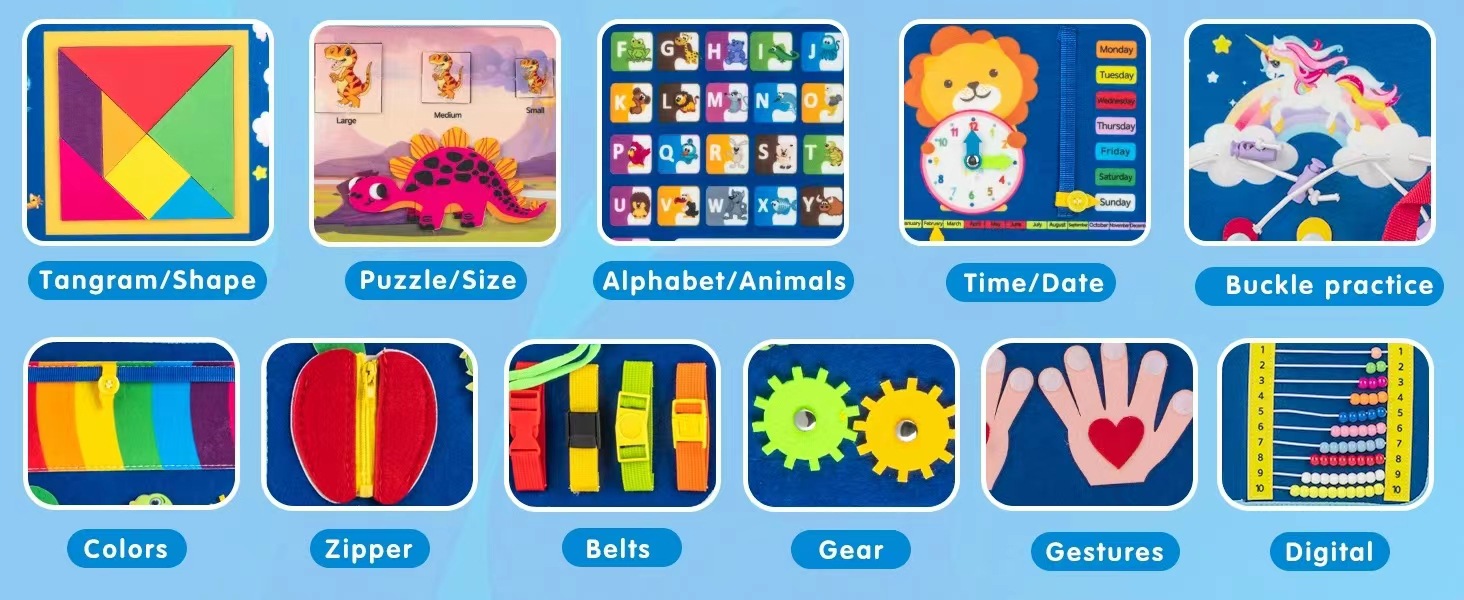 Ventas transfronterizas de fieltro en caliente educación temprana ocupada hecha a mano para aprender puzzle infantil juguetes cremallera al por mayor