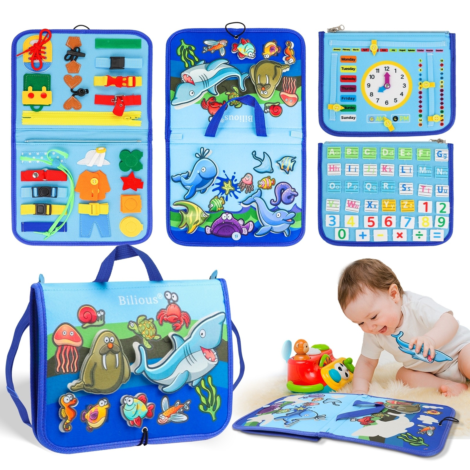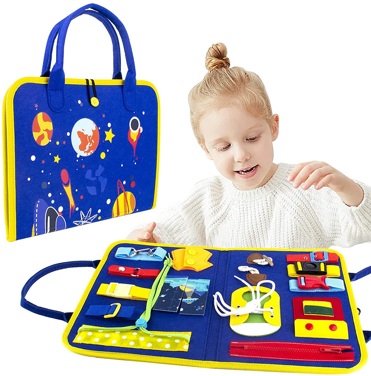Tablero de actividades transfronterizo de fieltro, tablero de aprendizaje temprano para bricolaje, libro de actividades educativas para niños con temática de vestir.