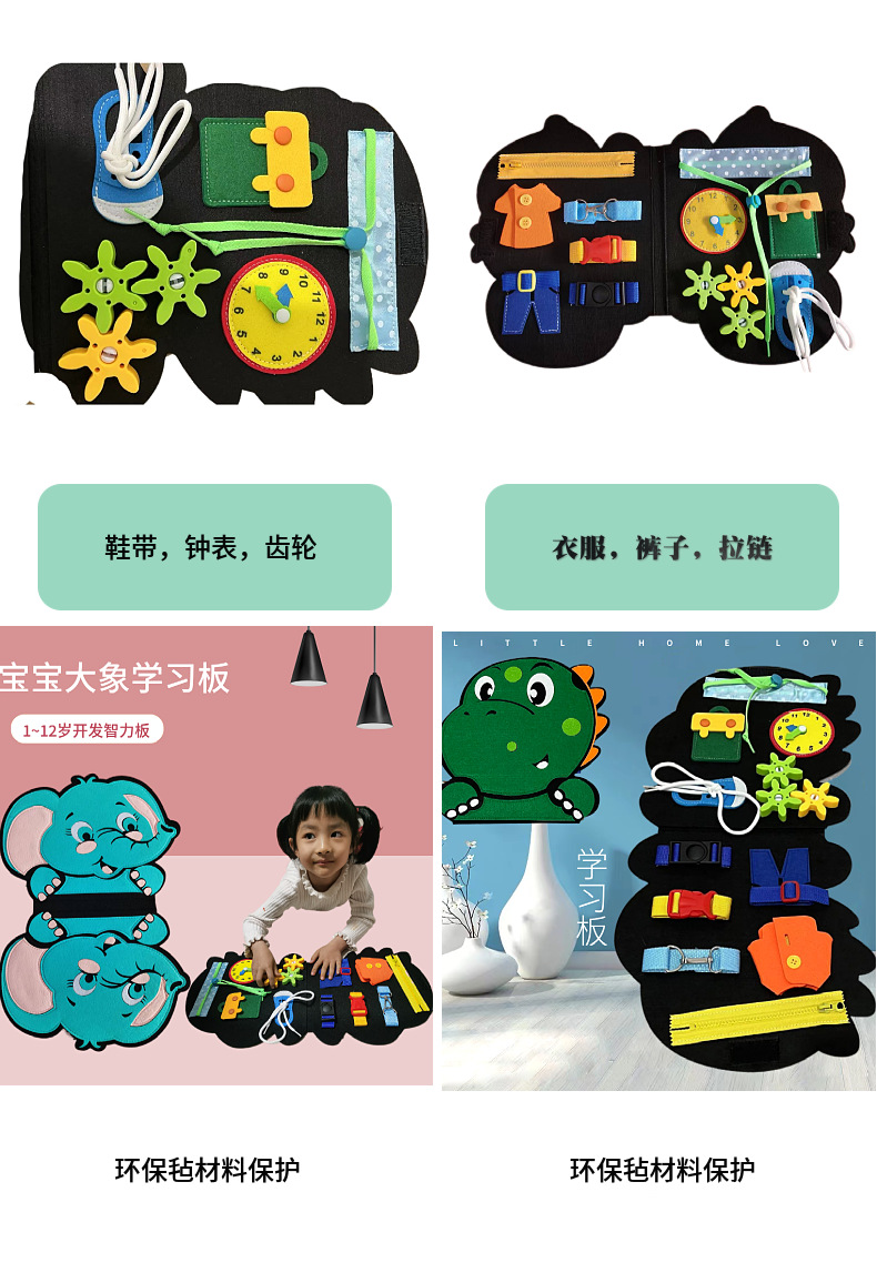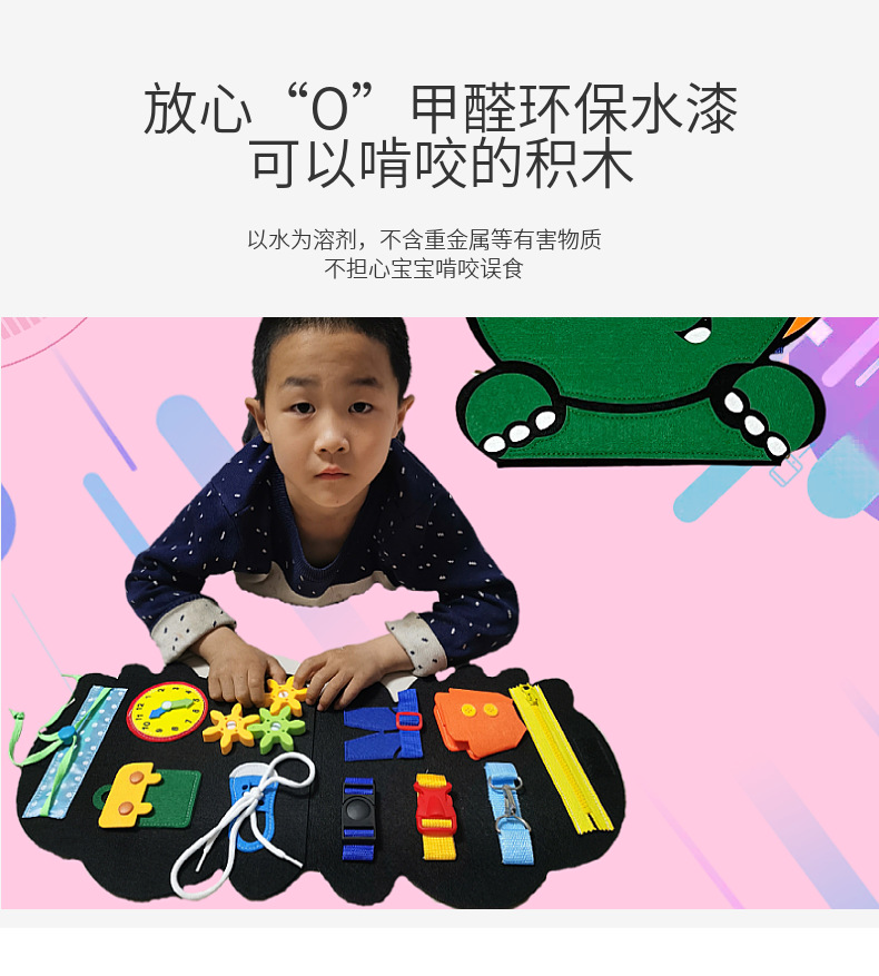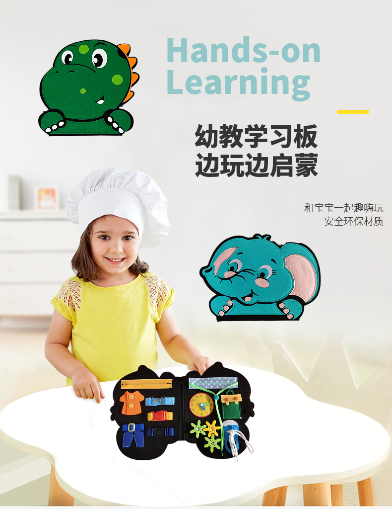 Montessori dinosaurio sentía tablero de aprendizaje ocupado Junta educación de la primera infancia niños Ilustración rompecabezas fieltro tablero de educación temprana Tablero de aprendizaje