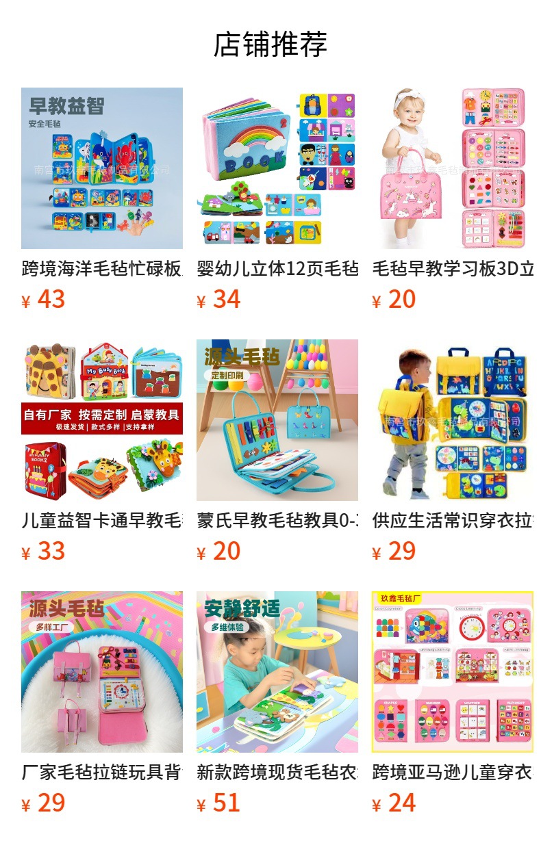 Felt transfronterizo Junta ocupada Educación infantil Habilidades prácticas de vida Monchi Puzzle Kindergarten libro de tela personalizado