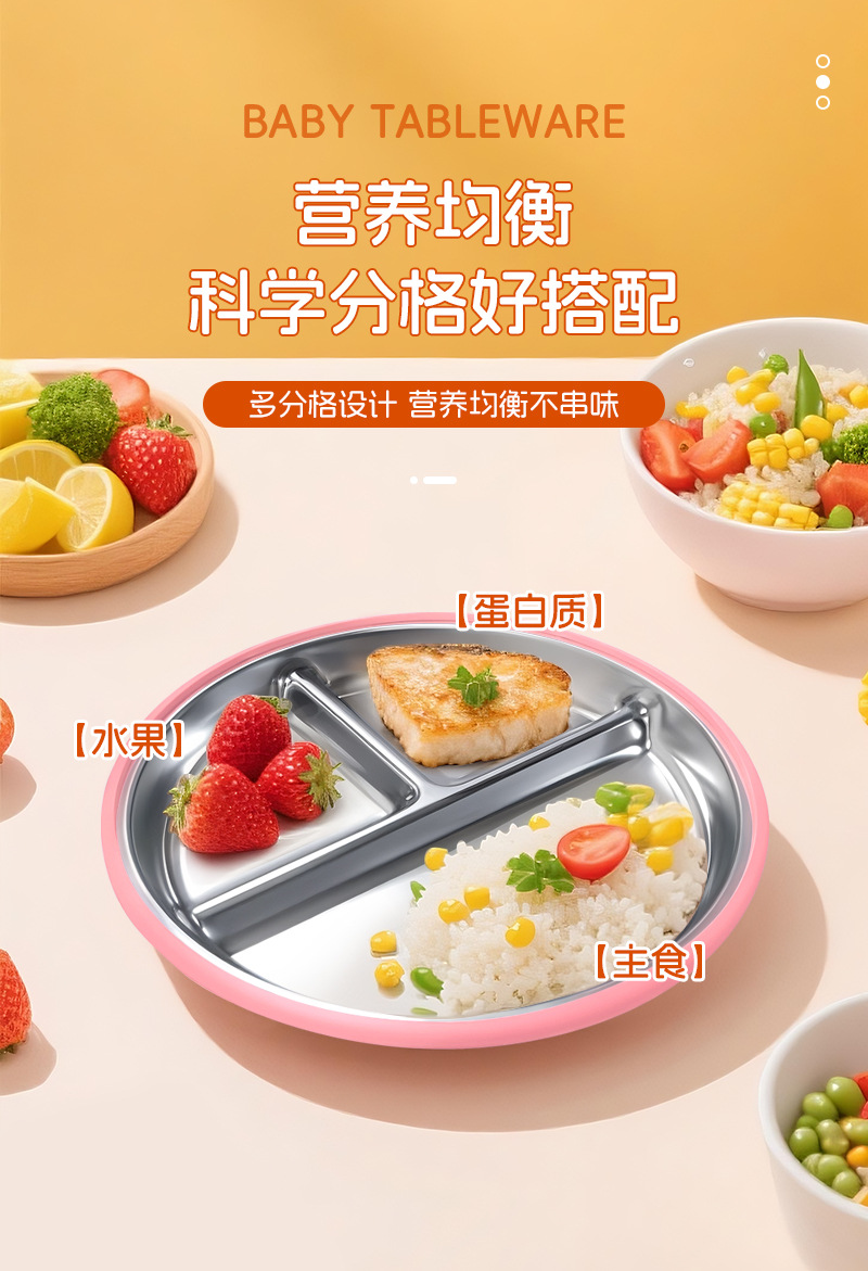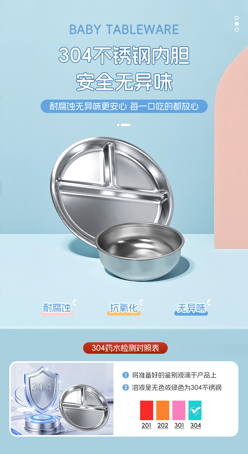 Juego de diez piezas de vajilla para niños de Amazon Juego de platos de comedor de acero inoxidable 304