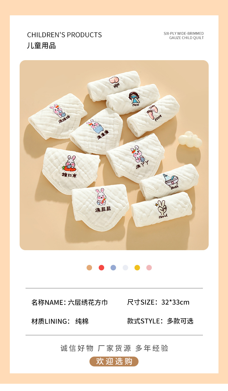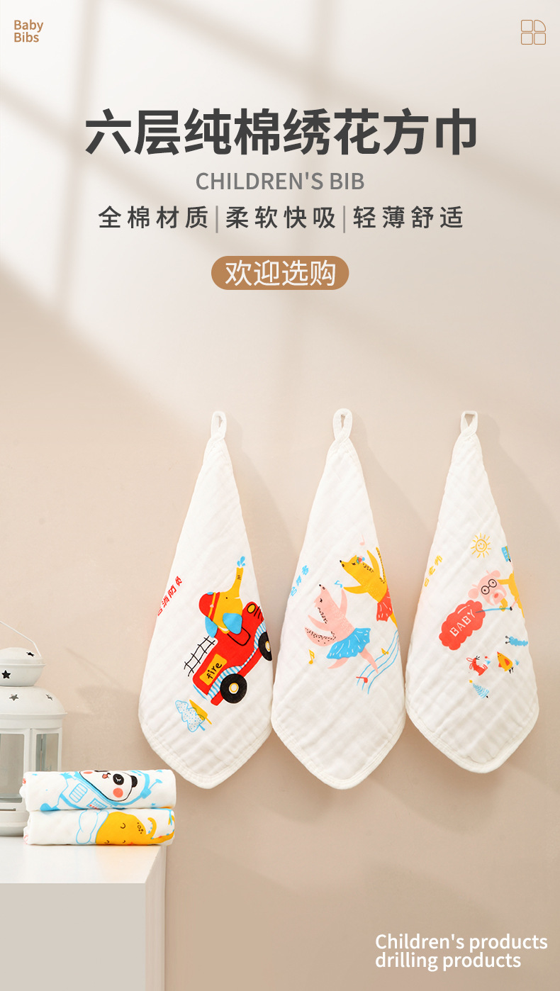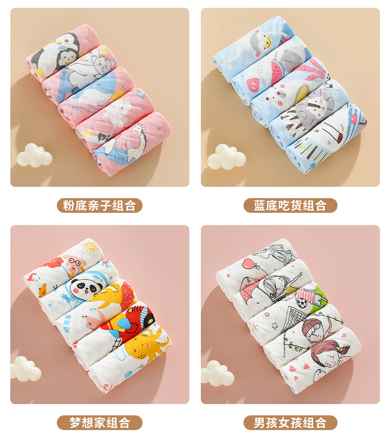 Toallas cuadradas tipo A gaza de algodón absorbente de agua transpirable impresión de lavado facial toallas cuadradas toallas para niños recién nacidos