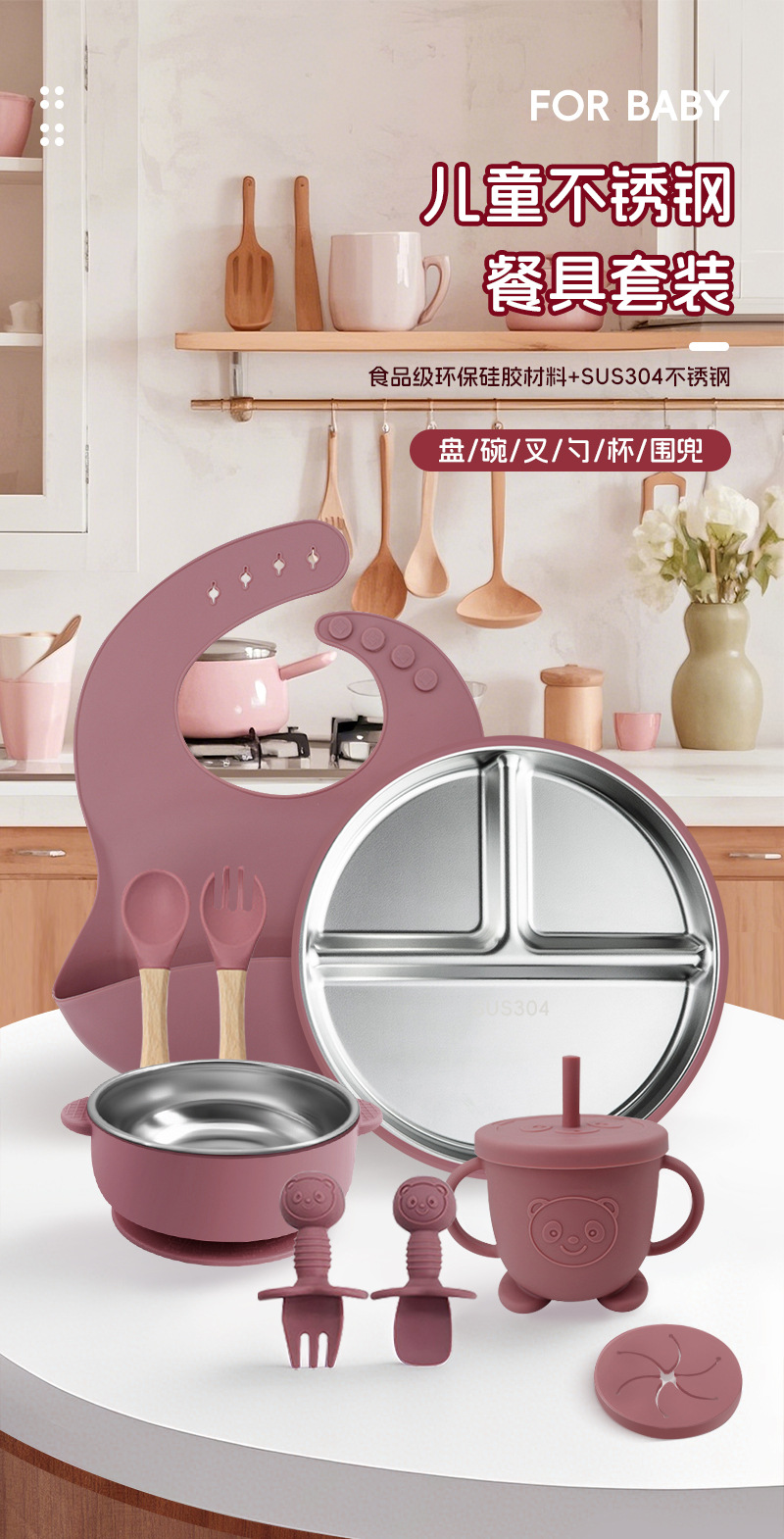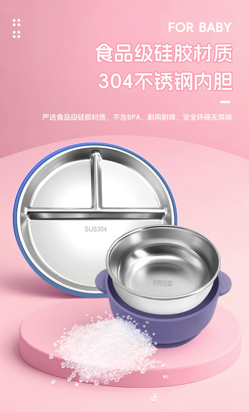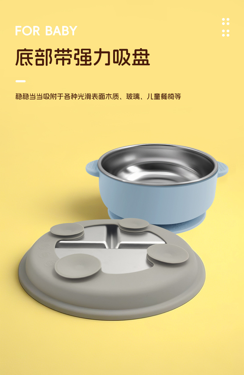 Juego de vajilla de acero inoxidable para niños de Amazon, tazón de alimentos, alimento de silicona a prueba de caídas, vajilla para bebés y madres