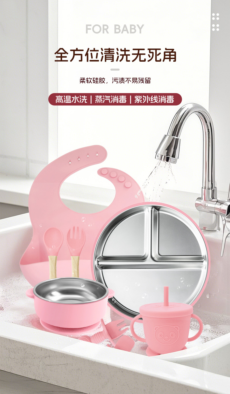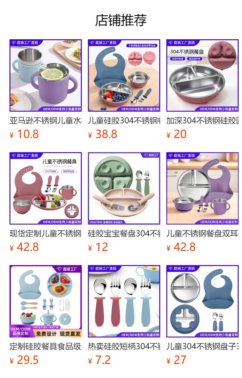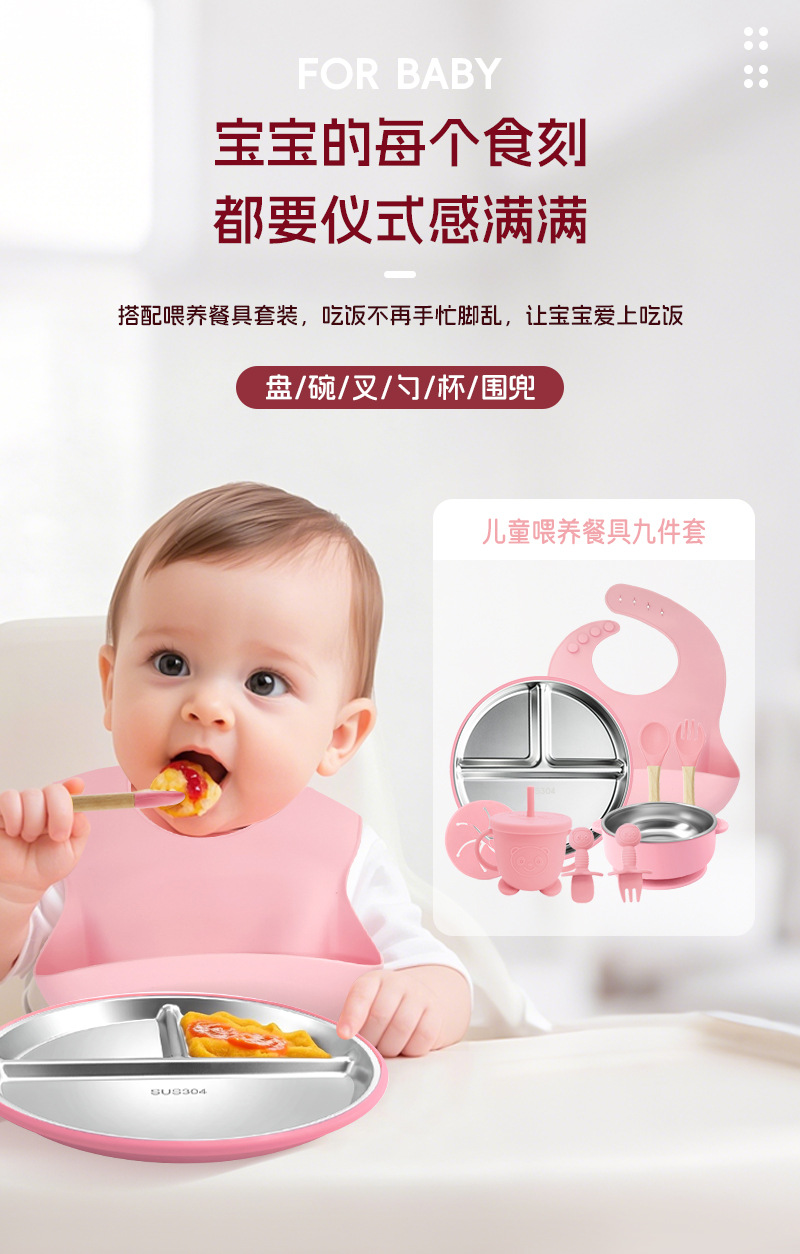 Juego de vajilla de acero inoxidable para niños de Amazon, tazón de alimentos, alimento de silicona a prueba de caídas, vajilla para bebés y madres