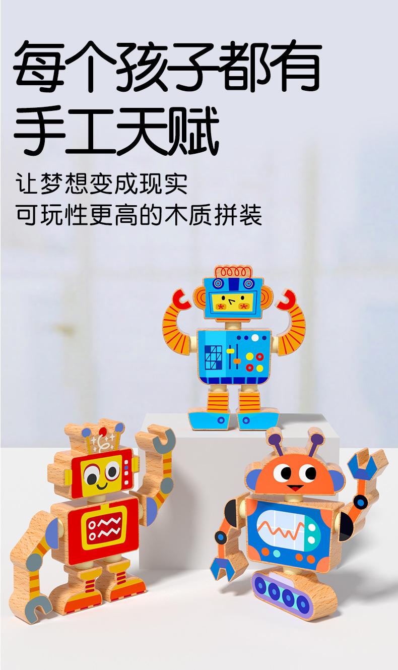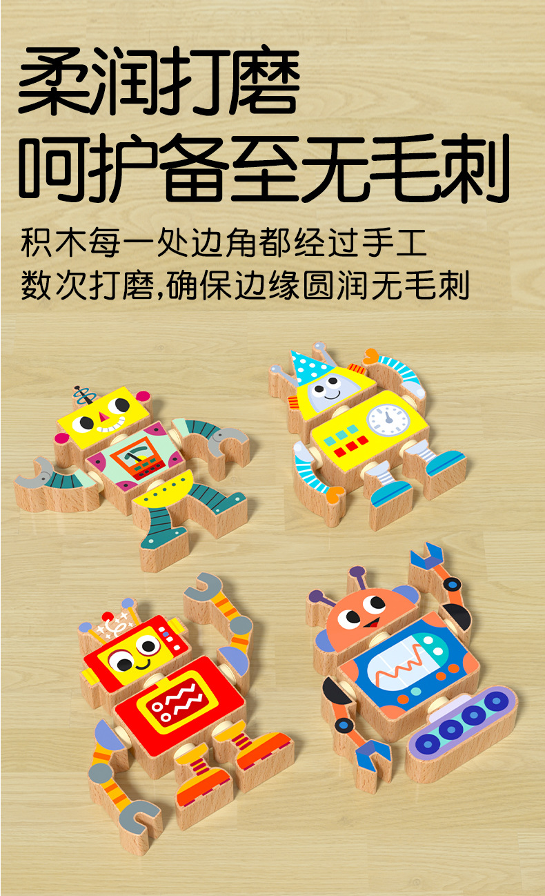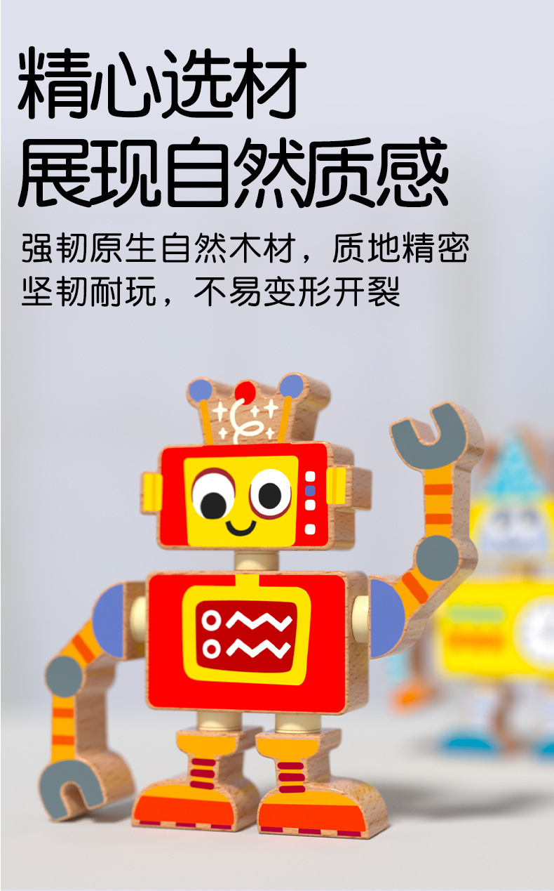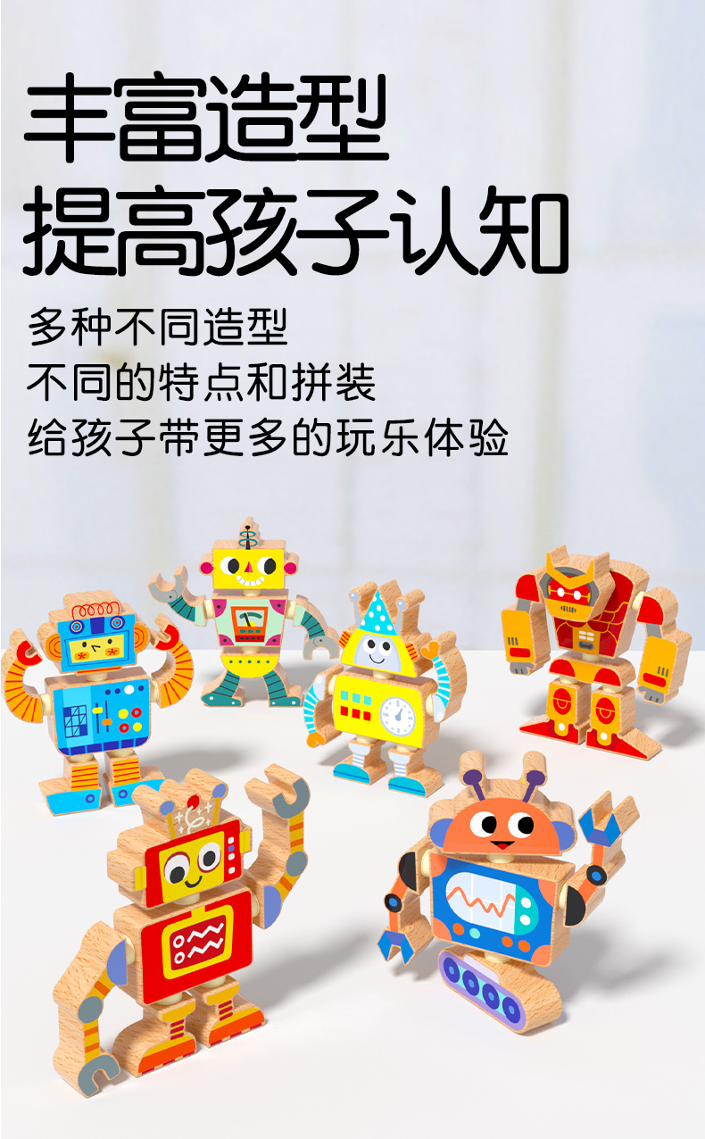 Robots para niños, juguetes de madera, muñecas articuladas, juegos de rompecabezas de bloques de ensamblaje, creación de pensamiento