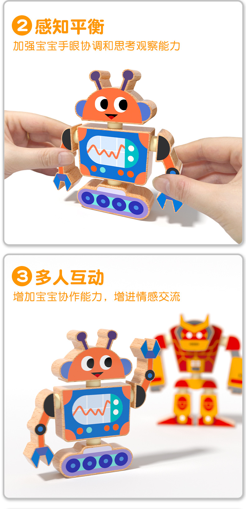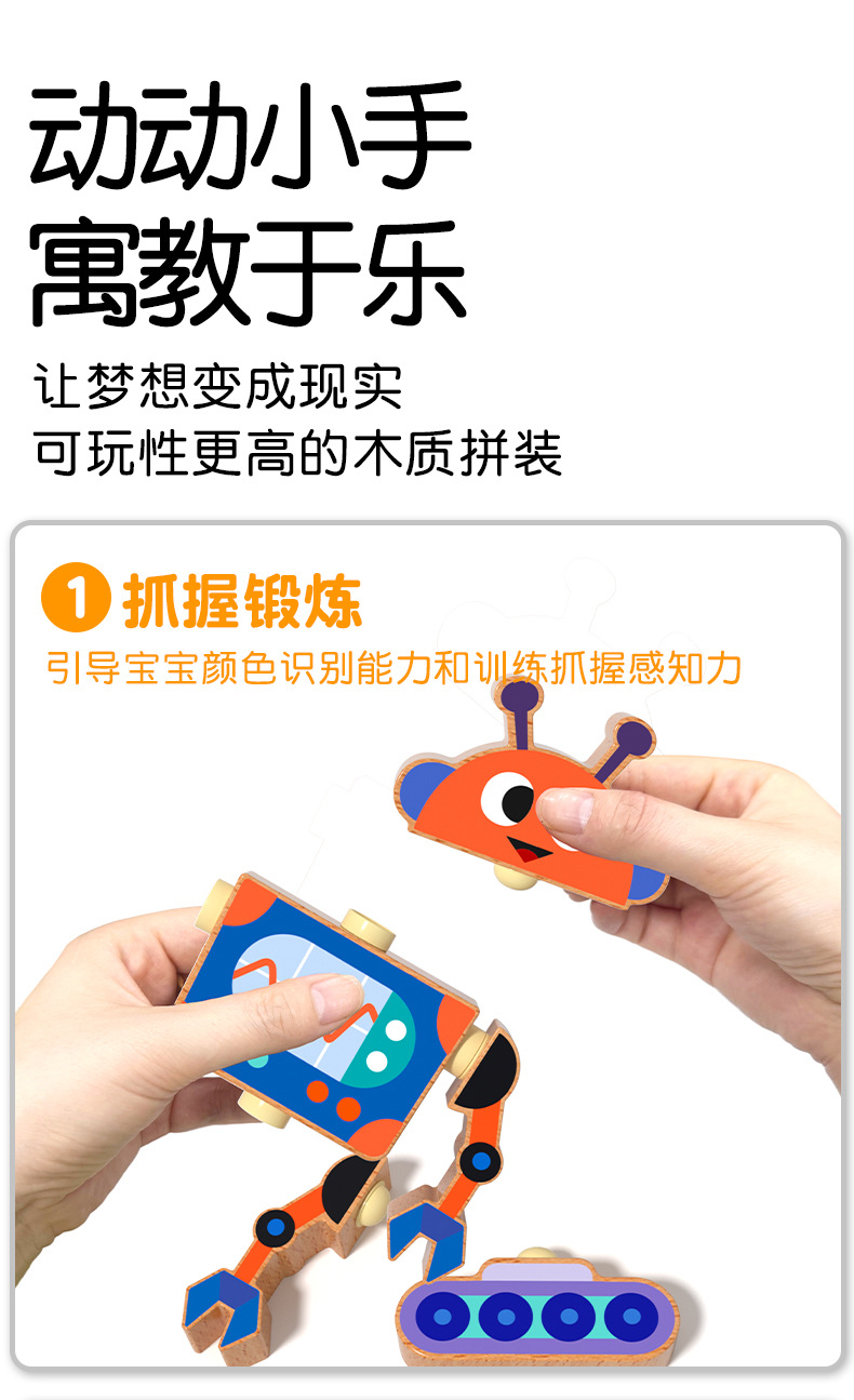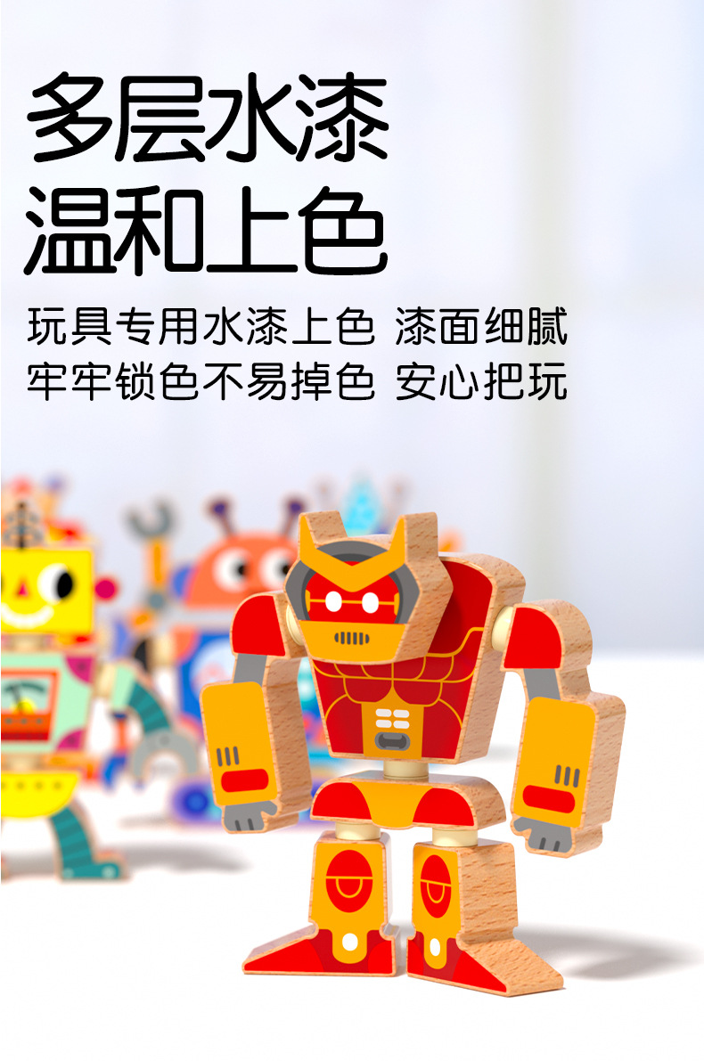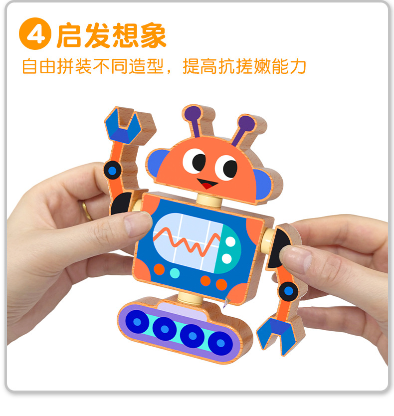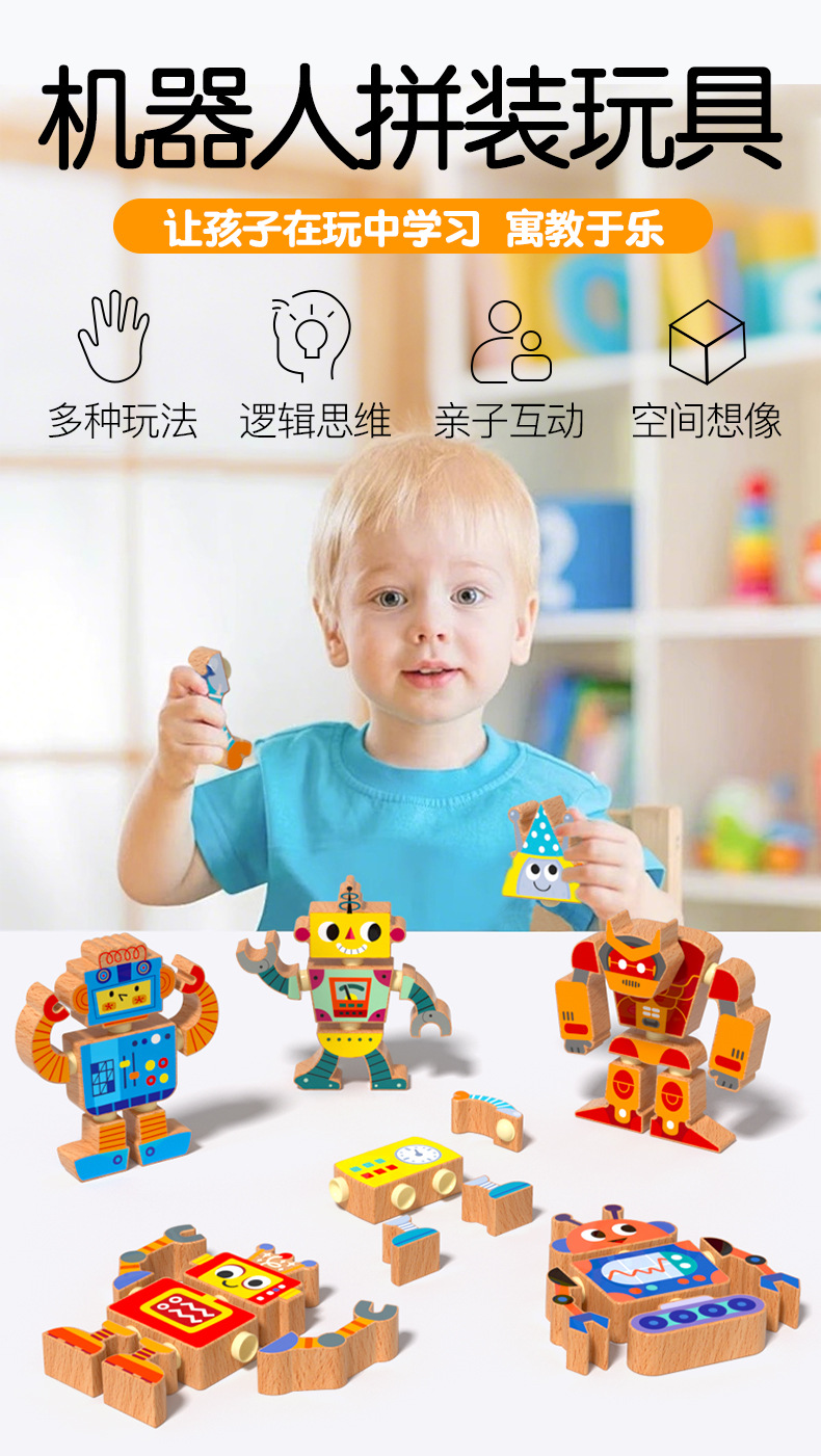 Robots para niños, juguetes de madera, muñecas articuladas, juegos de rompecabezas de bloques de ensamblaje, creación de pensamiento