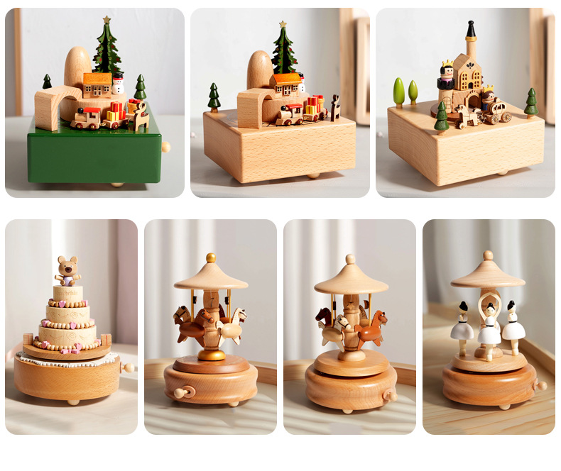 Personalidad transfronteriza tallada caja de música de madera creativa caja de ocho sonidos decoraciones para el hogar artesanías juguetes regalos de cumpleaños