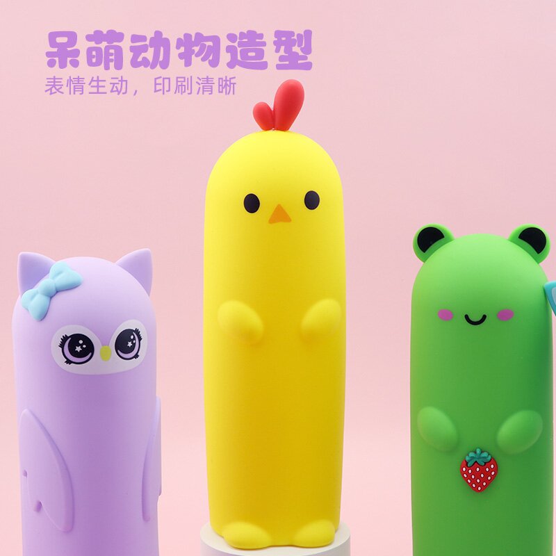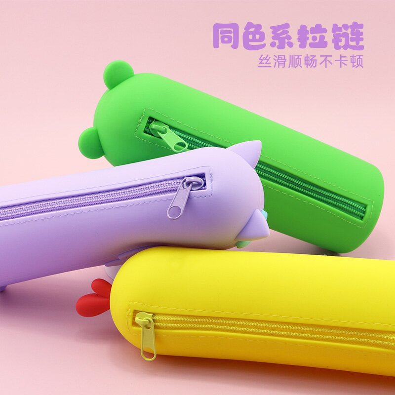 Nuevo animal de dibujos animados bolsa de lápices de silicona estudiante bolsa de papelería de almacenamiento de gran capacidad