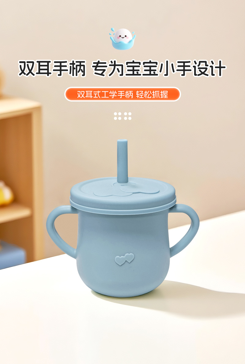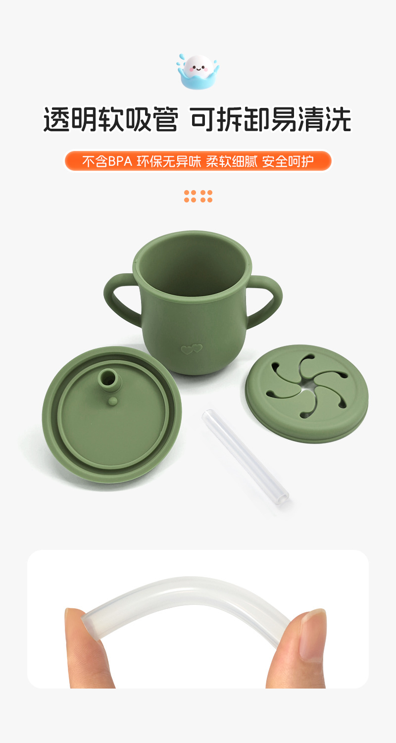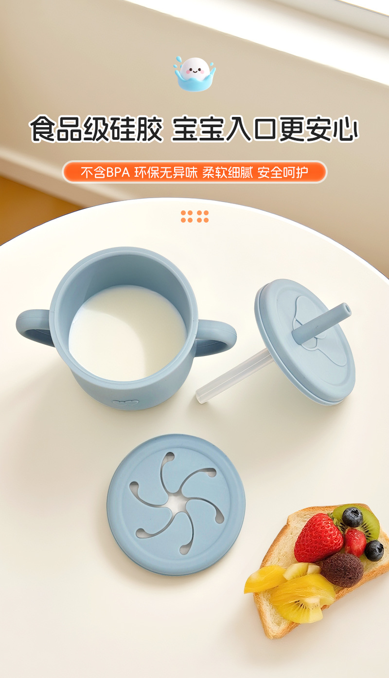 Taza de agua de silicona para niños, taza de agua de paja a prueba de fugas, taza de bocadillos de silicona para bebés, taza de agua para bebés