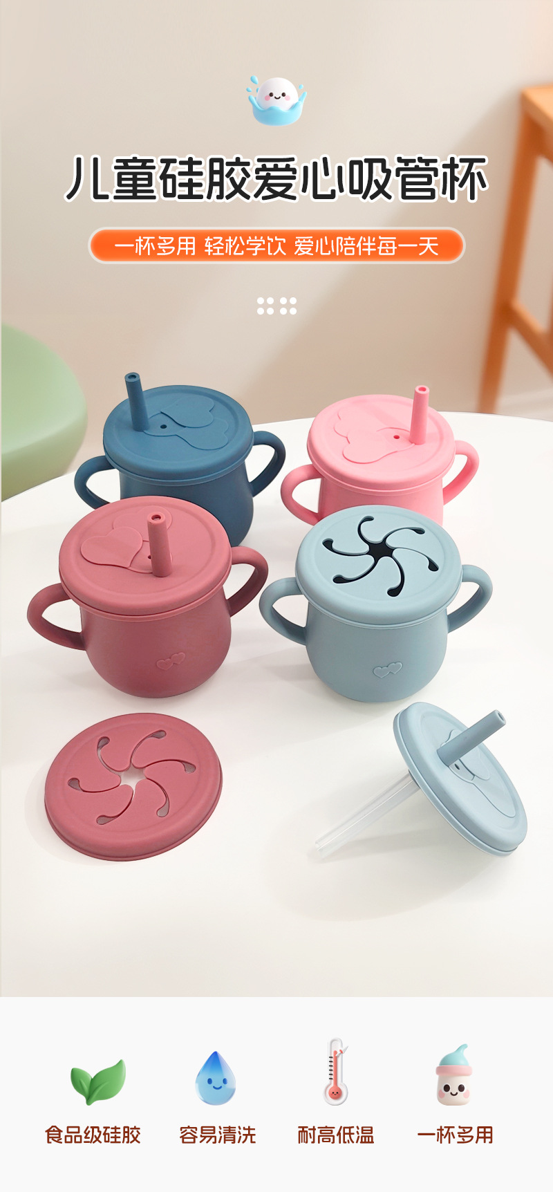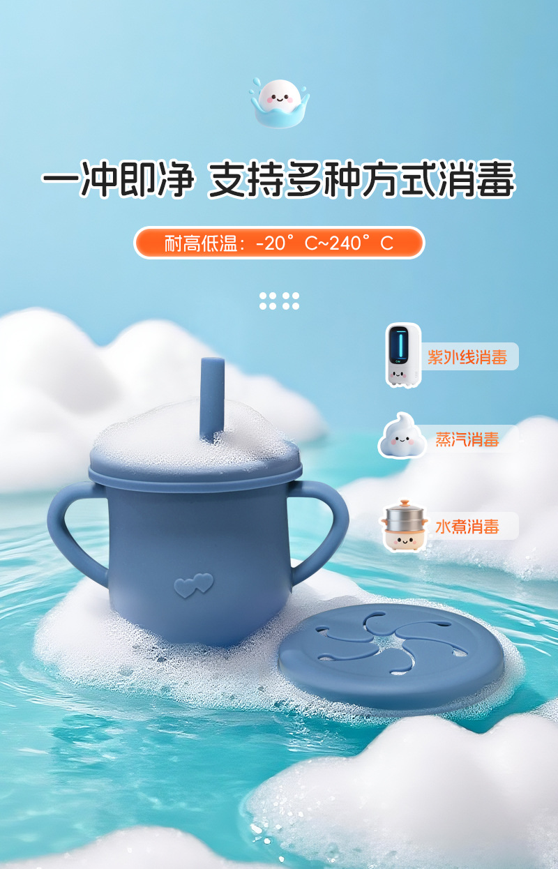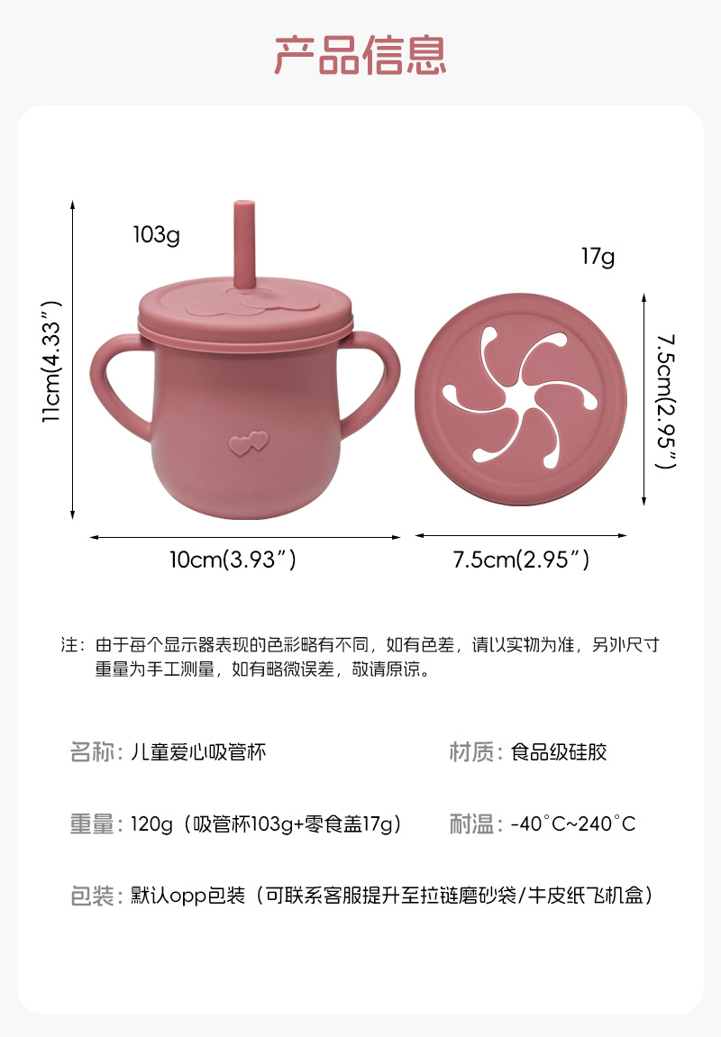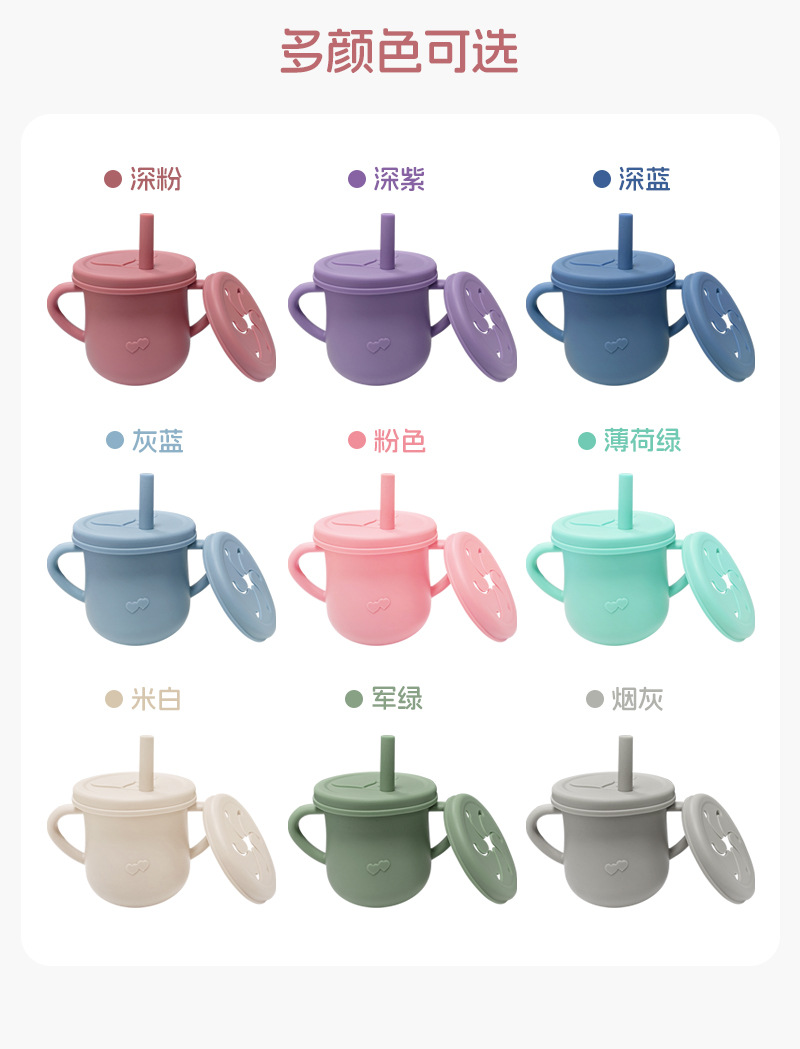 Taza de agua de silicona para niños, taza de agua de paja a prueba de fugas, taza de bocadillos de silicona para bebés, taza de agua para bebés