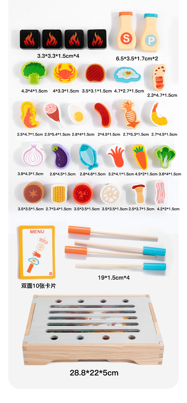 CPC / CE transfronterizo para niños en casa Simulación de madera cocina parrilla de parrilla de alimentos herramientas de incienso conjunto de juguetes