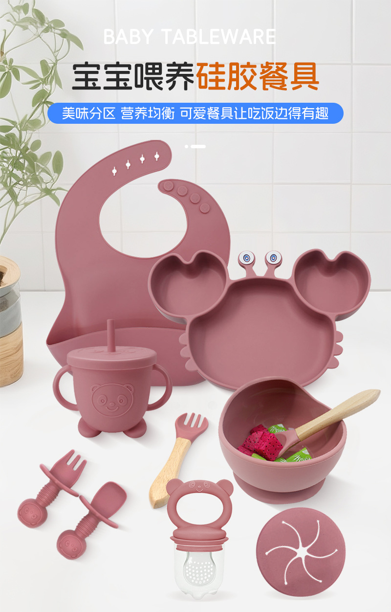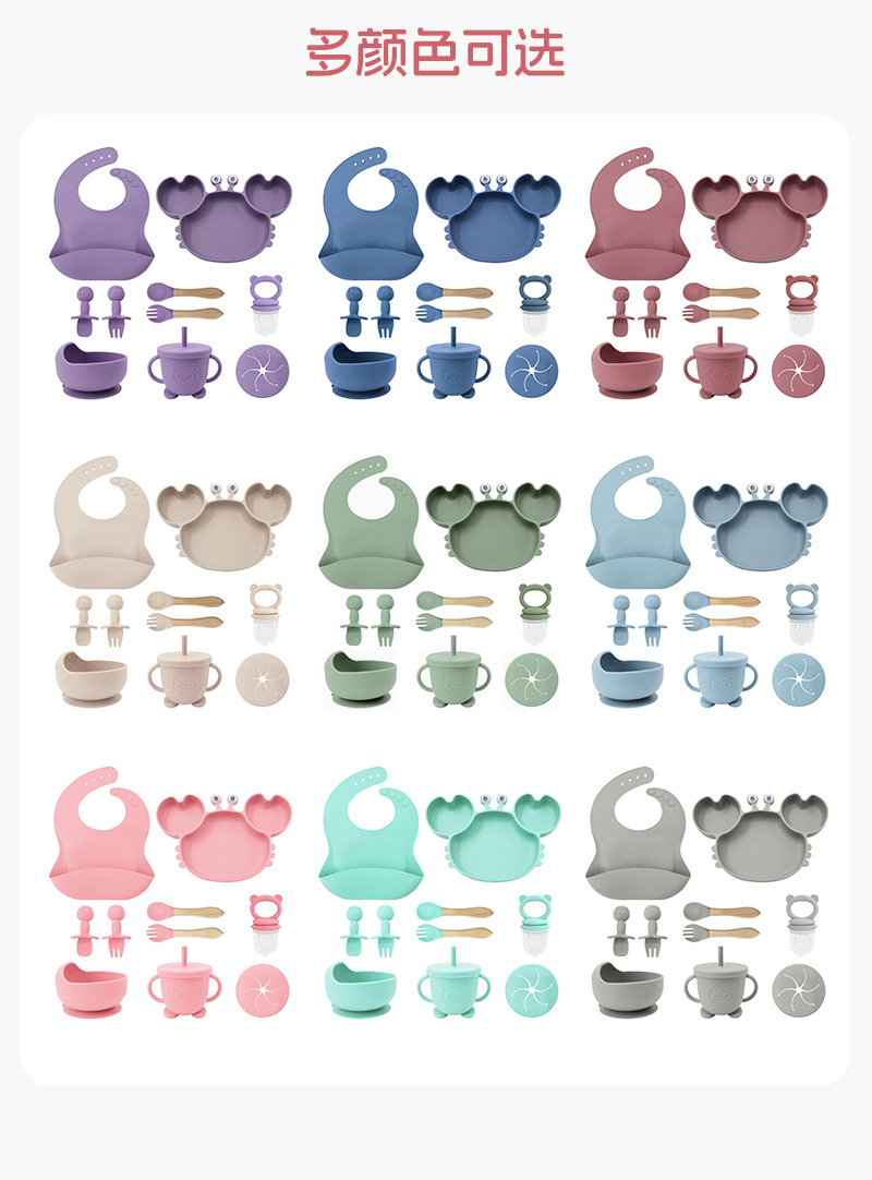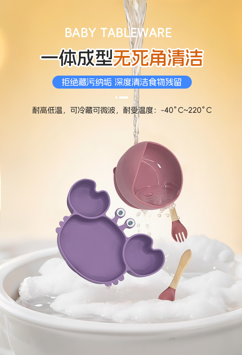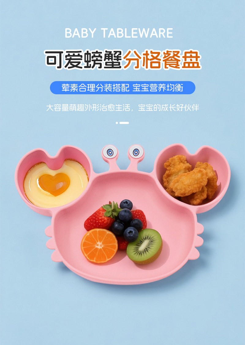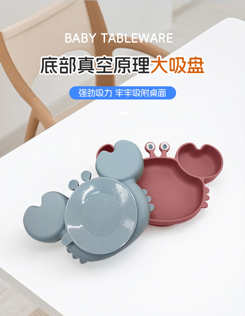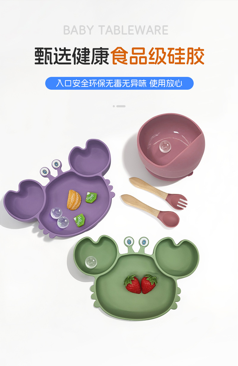 Plato de silicona para niños set de cangrejo para bebés alimentando bacon portátil para comer tenedor cuchara set de bolos de alimentos suplementarios