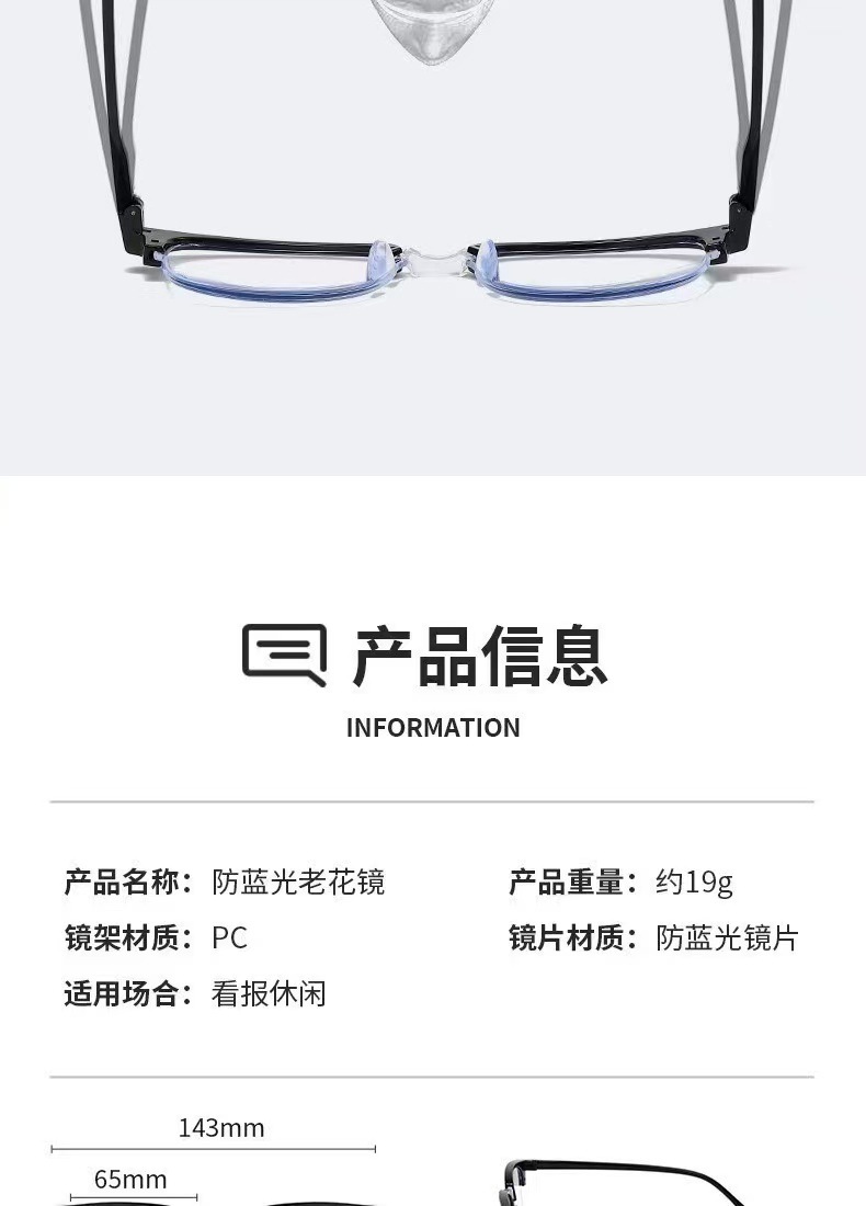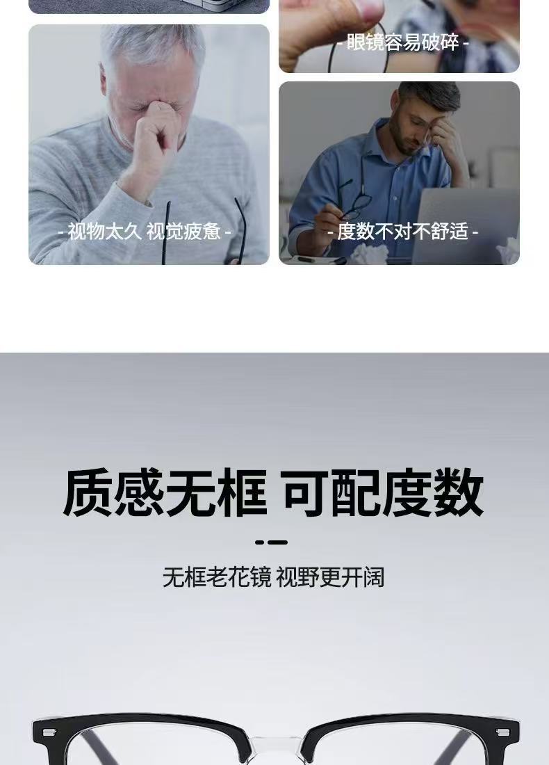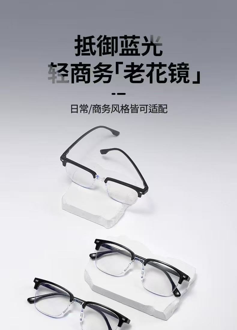 Nueva moda ceja retro medio marco anti-luz azul gafas de presbyopia de alta definición gafas de presbyopia zoom inteligente