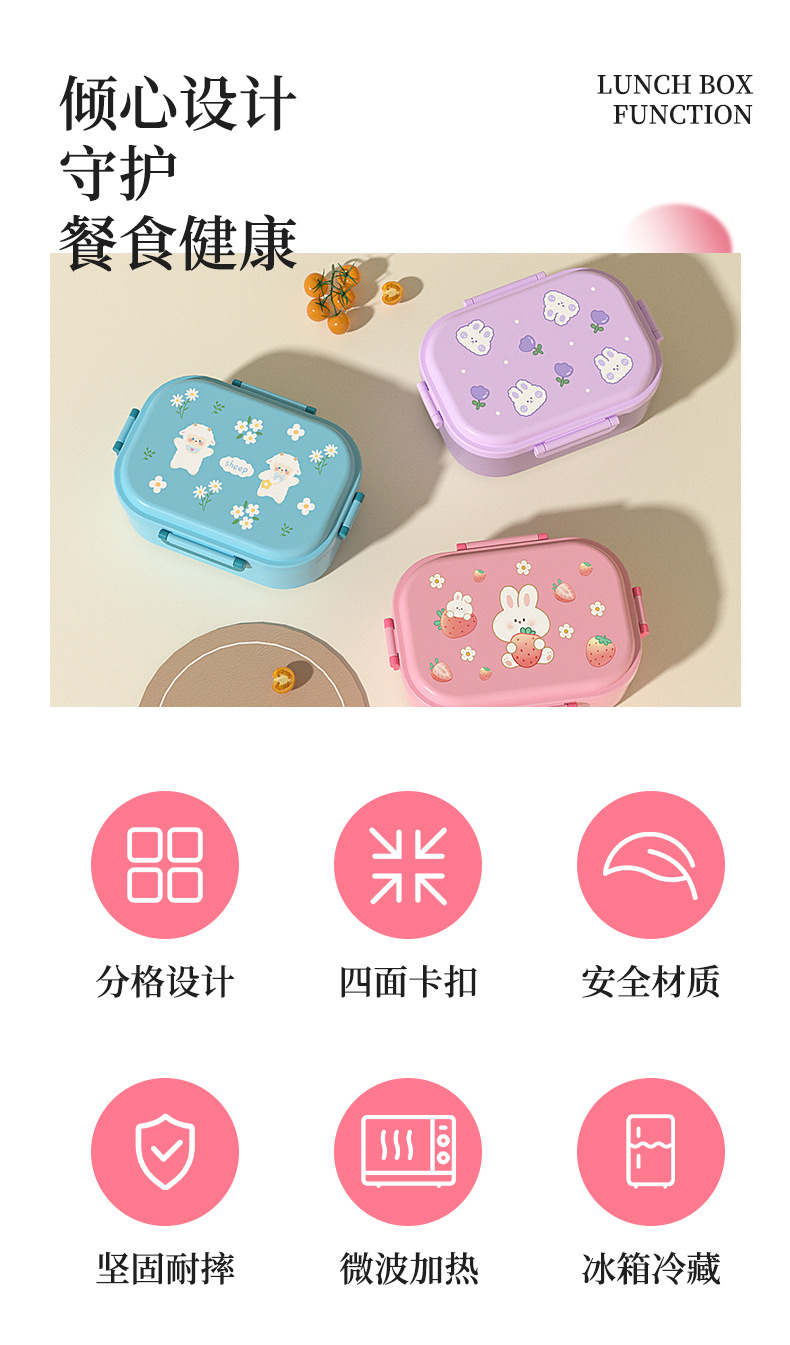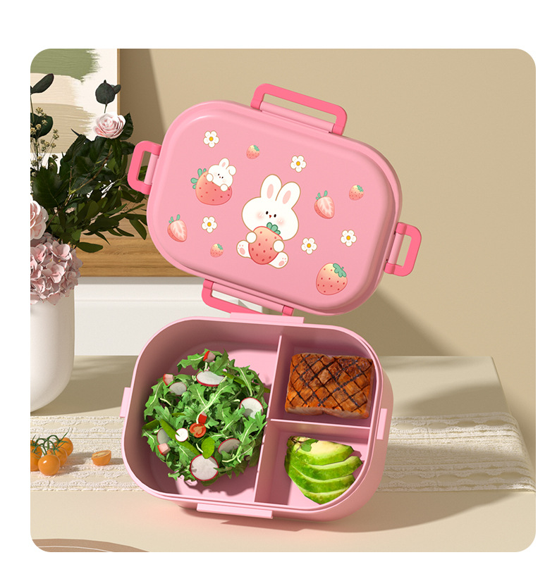 Caja de almuerzo de estudiantes caja de ensalada de niños para el trabajo calentamiento por microondas caja de plástico portátil