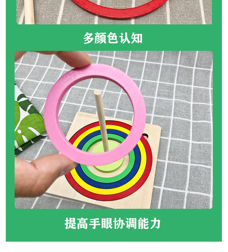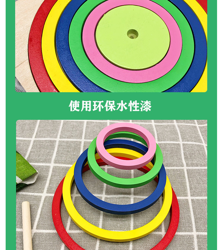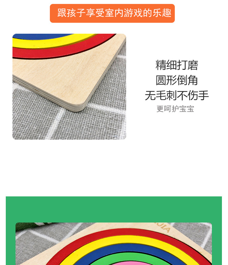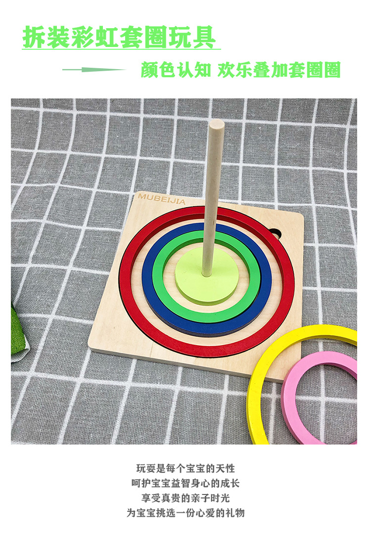 Juguetes transfronterizos CPC y CE arco iris de madera Juguetes de jardín de infantes Cognición de color 2 coordinación ojo-mano 3 +