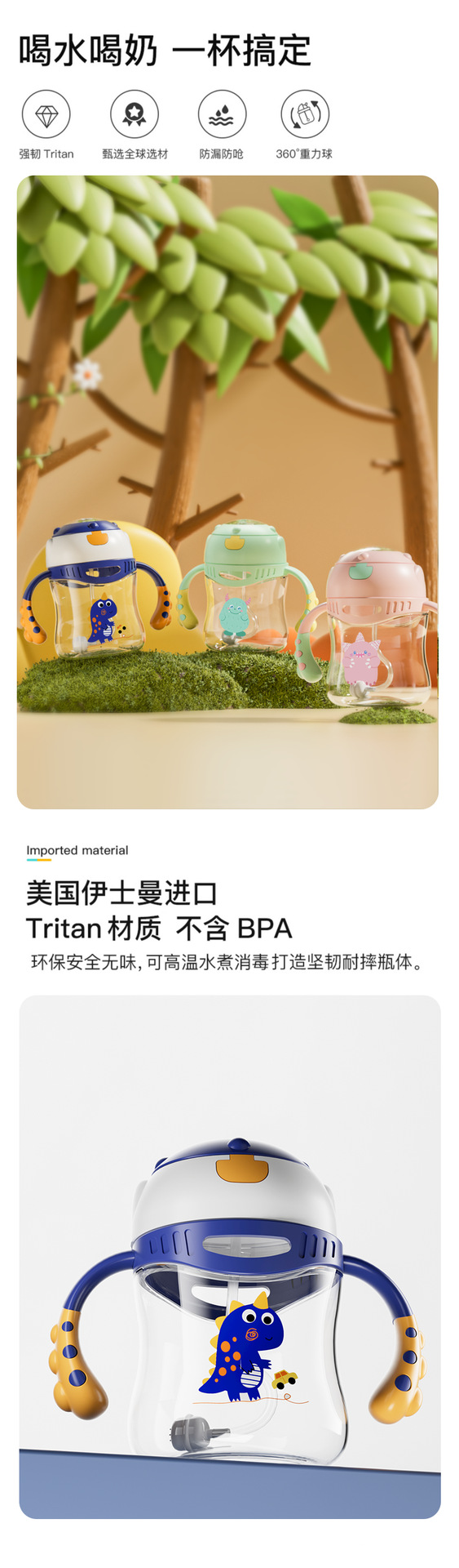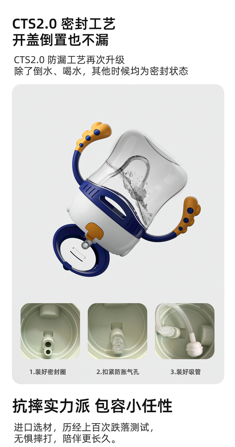 Baby naughty toukie taza de bebés, taza de agua para niños, taza de paja a prueba de fugas y caídas para jardín de infantes