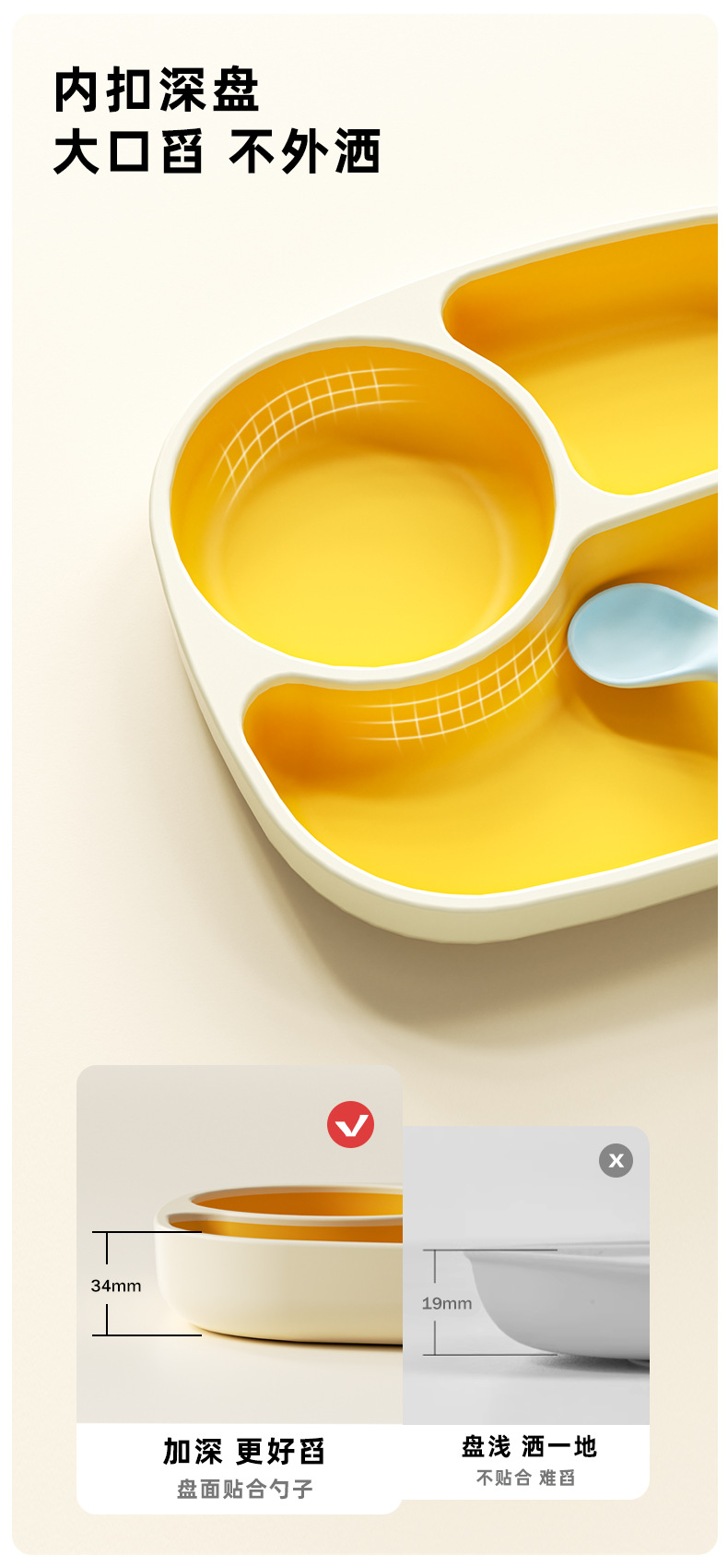 Toukie plato de comedor dividido para bebés cubiertos para niños bolos de alimentos suplementarios para bebés que comen por sí mismos platos de entrenamiento con cubierta