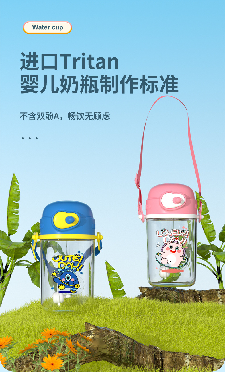Toukie bebés tazas de agua de paja tazas de agua de viento infantil tazas de agua TRITAN en línea rojas chicas porta tazas de agua