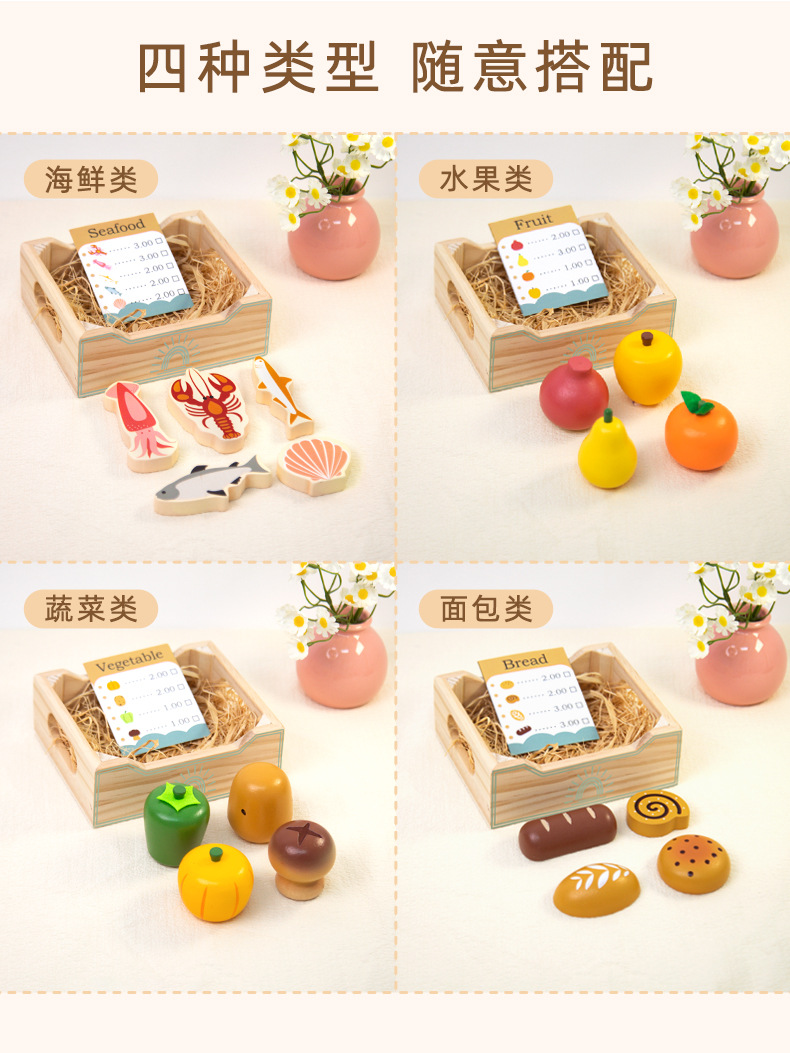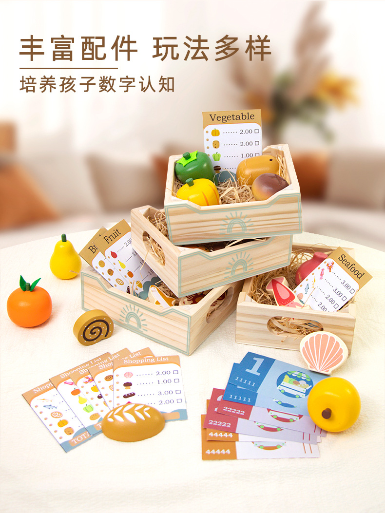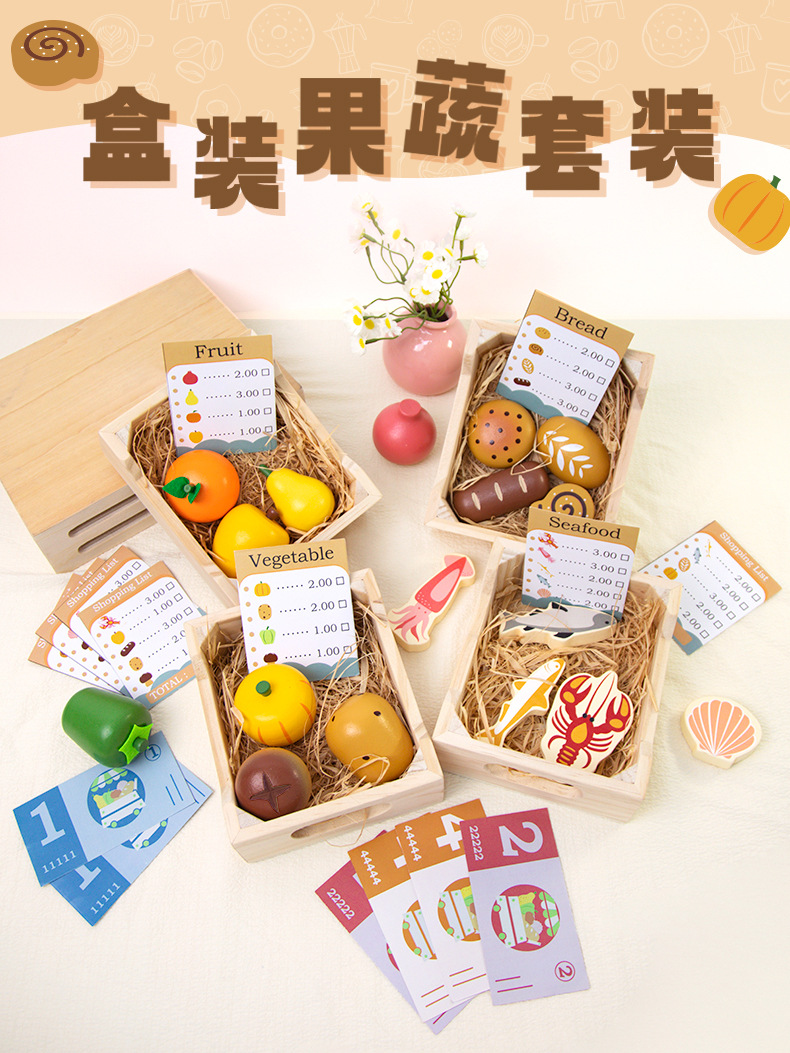 Juguetes transfronterizos CPC/CE Madera para niños Educación temprana Caja de frutas y verduras Juego de juegos de frutas y verduras