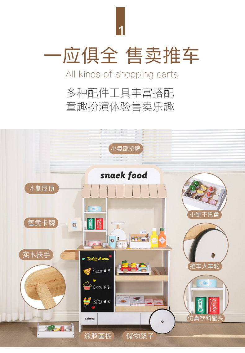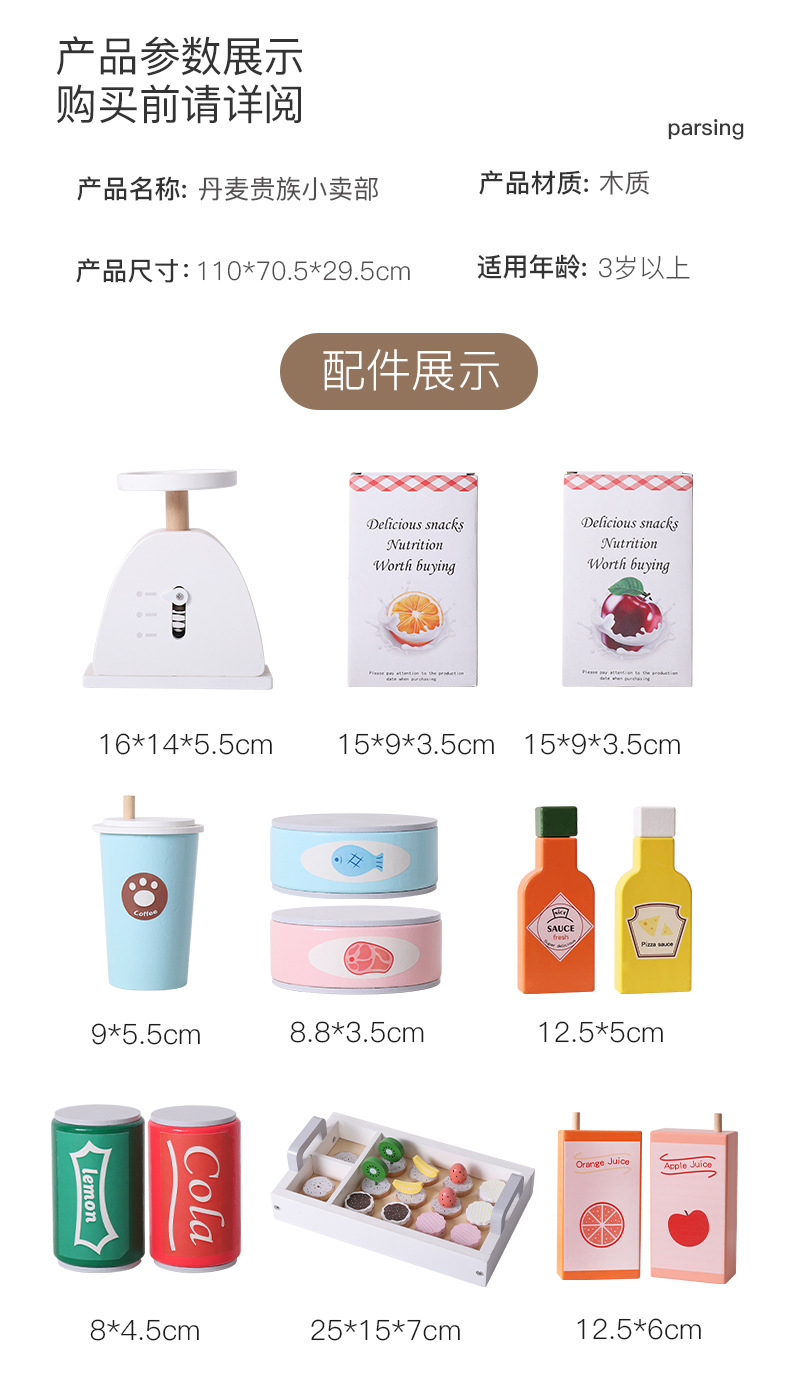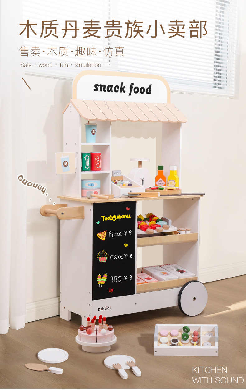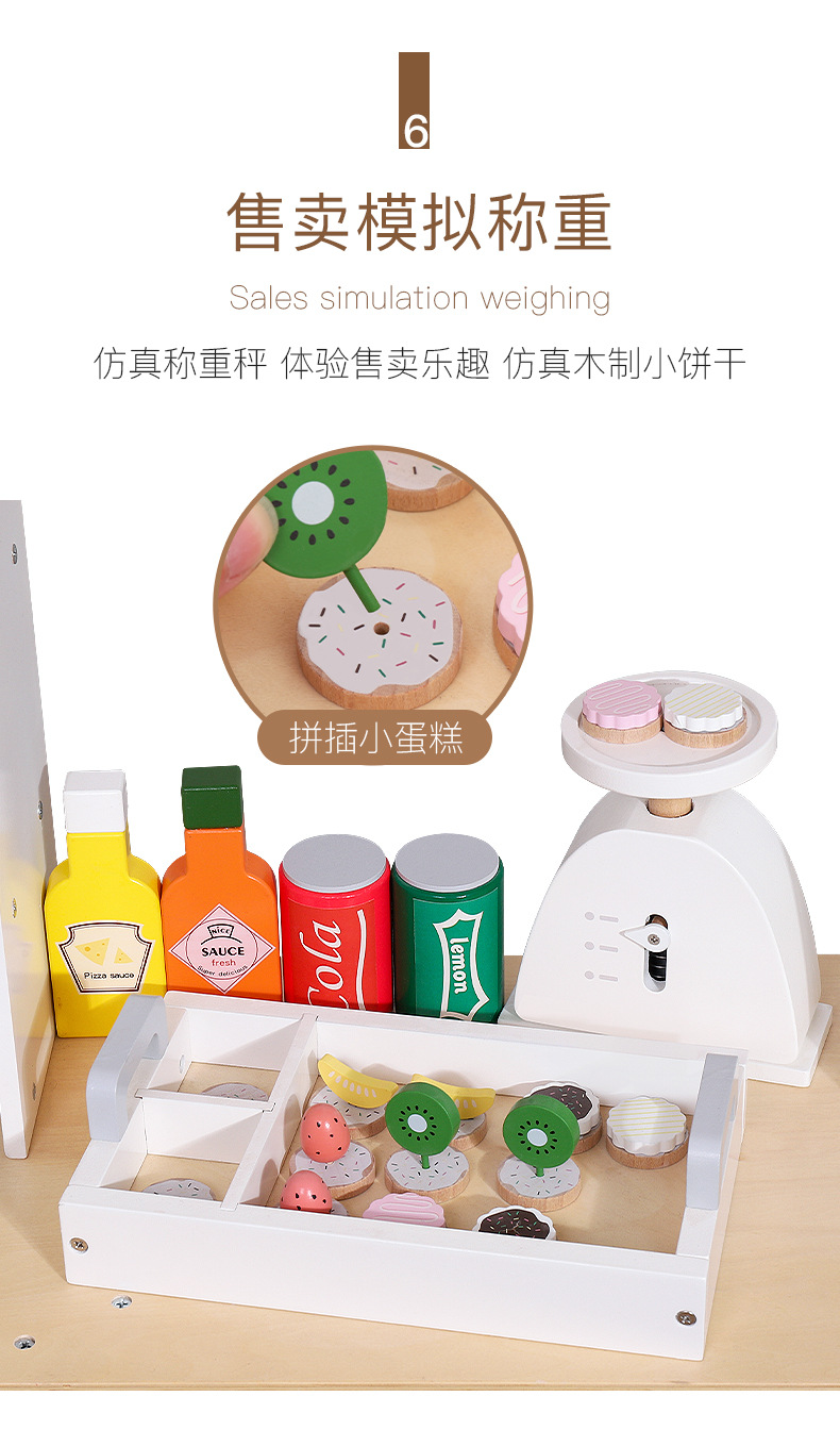 Juguetes transfronterizos CE / CPC madera simulación casera aristocrática danesa tienda blanca caja registradora pastel de pizza