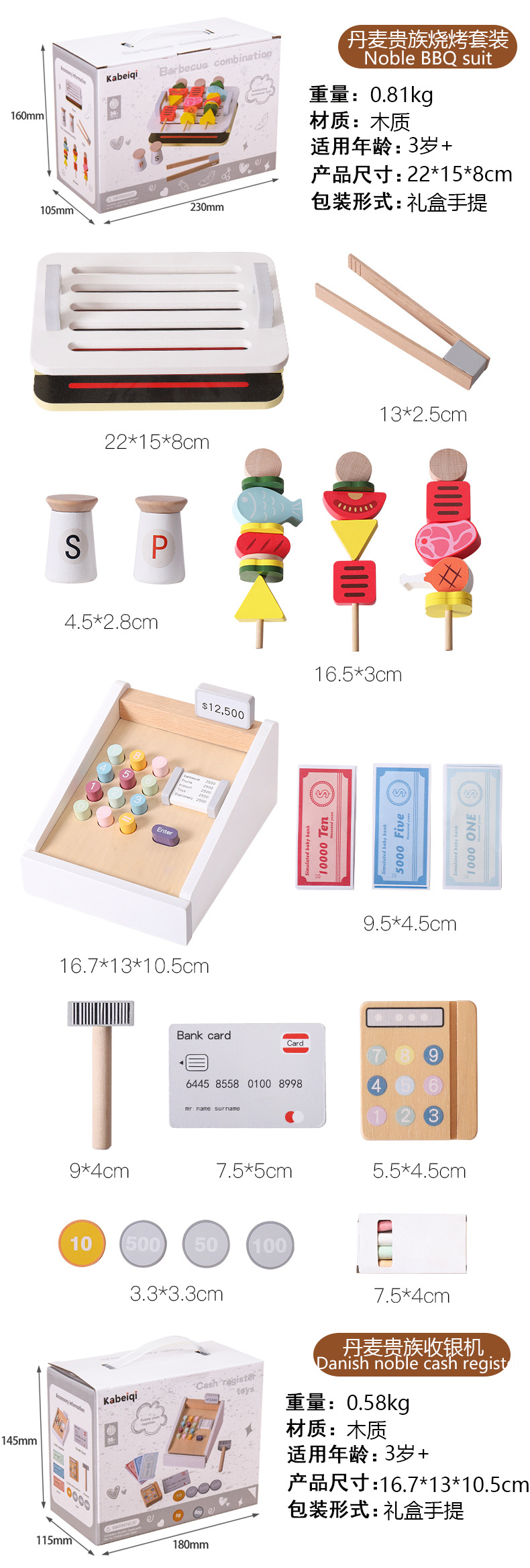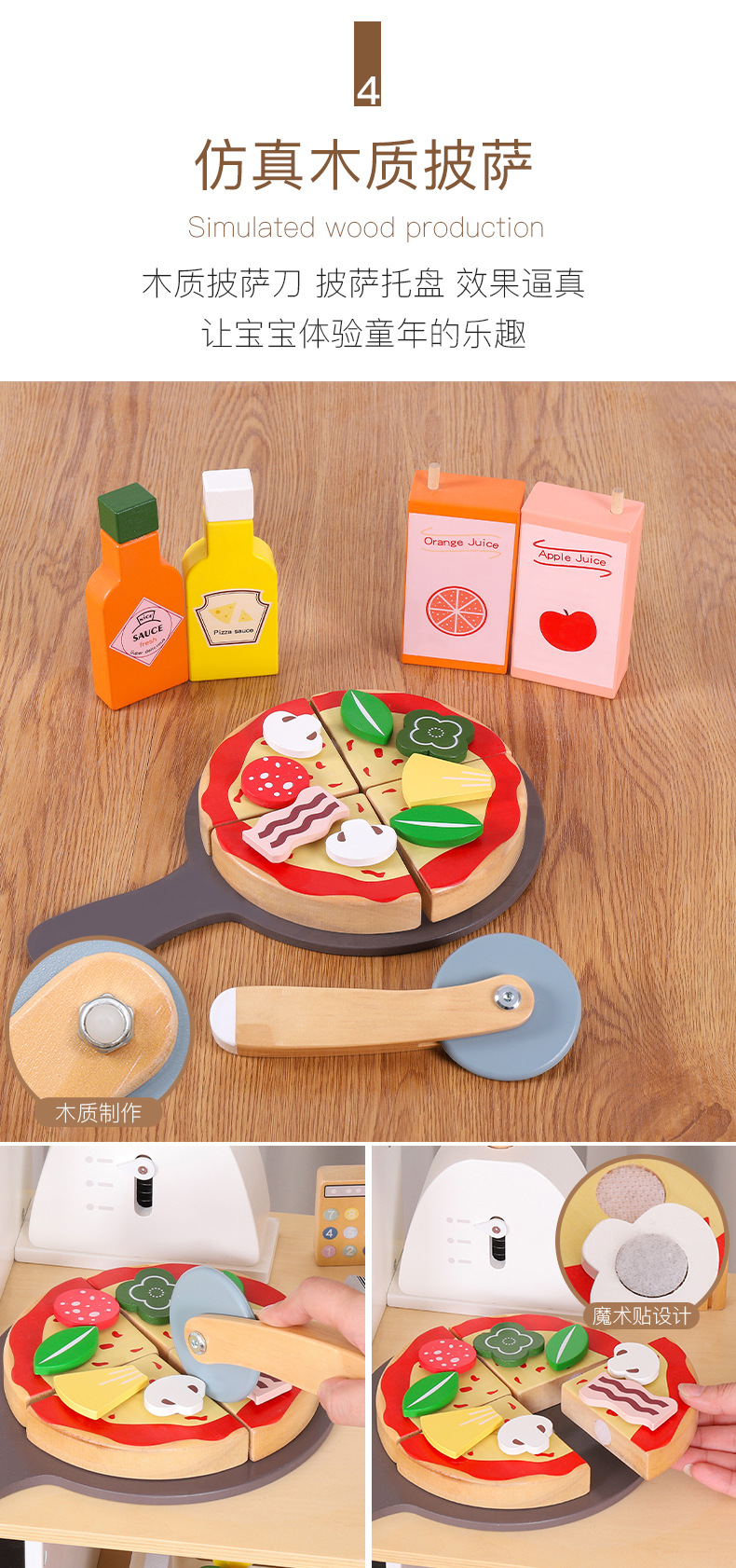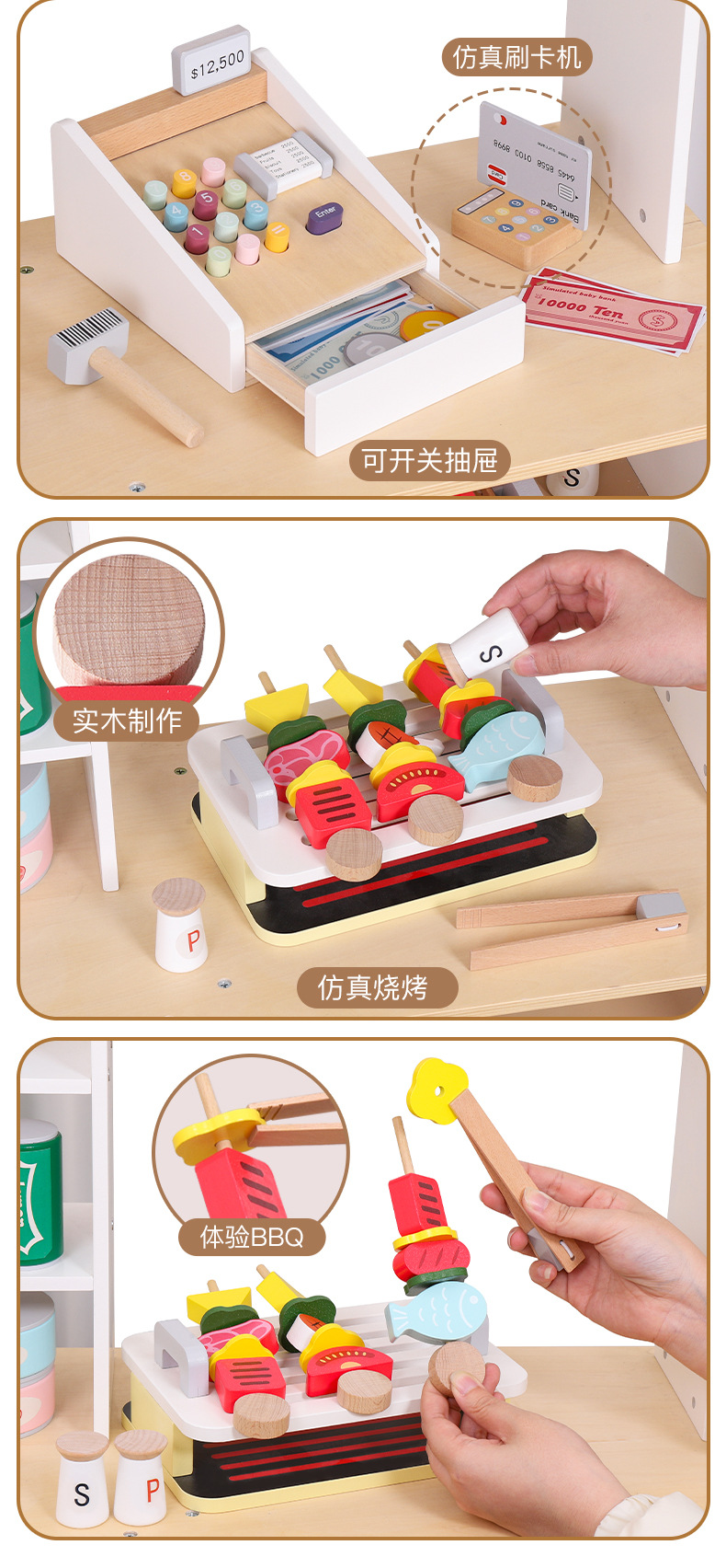 Juguetes transfronterizos CE / CPC madera simulación casera aristocrática danesa tienda blanca caja registradora pastel de pizza