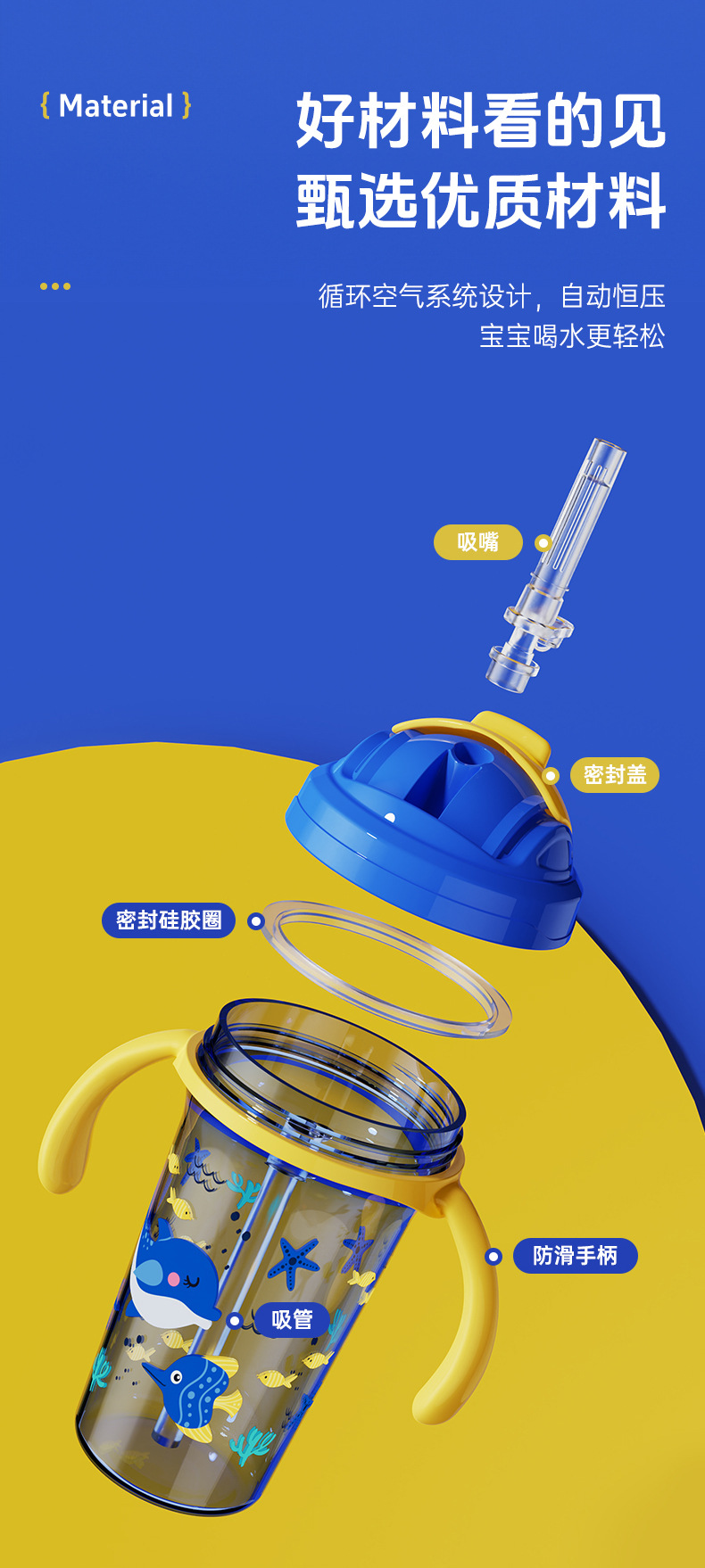 Taza antigoteo de gran capacidad directa de fábrica con tapa y mango aislamiento térmico anti-escaldado anti-caída taza para beber para niños