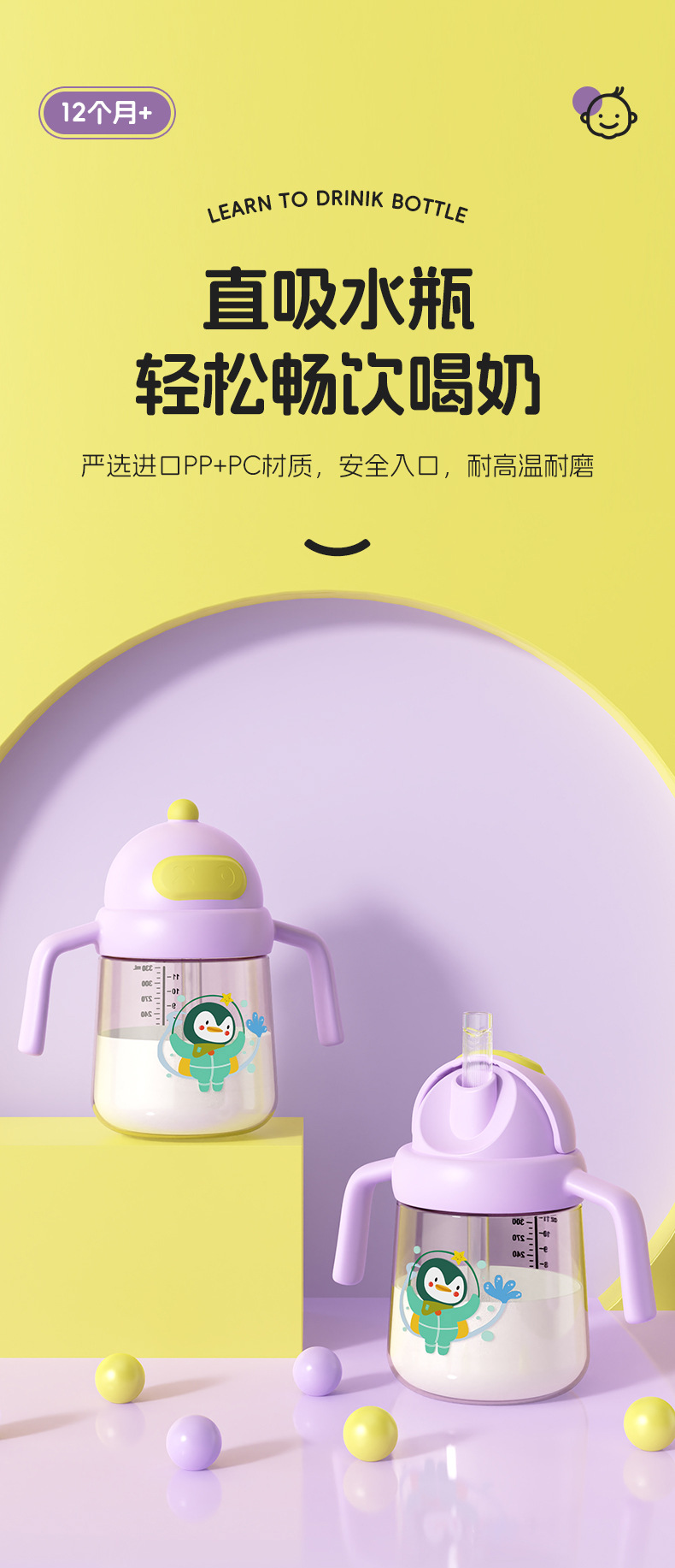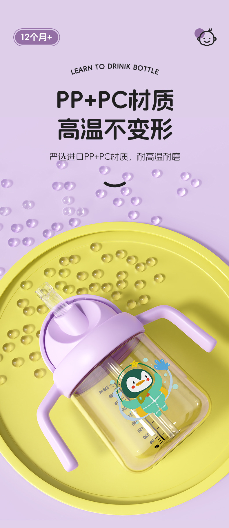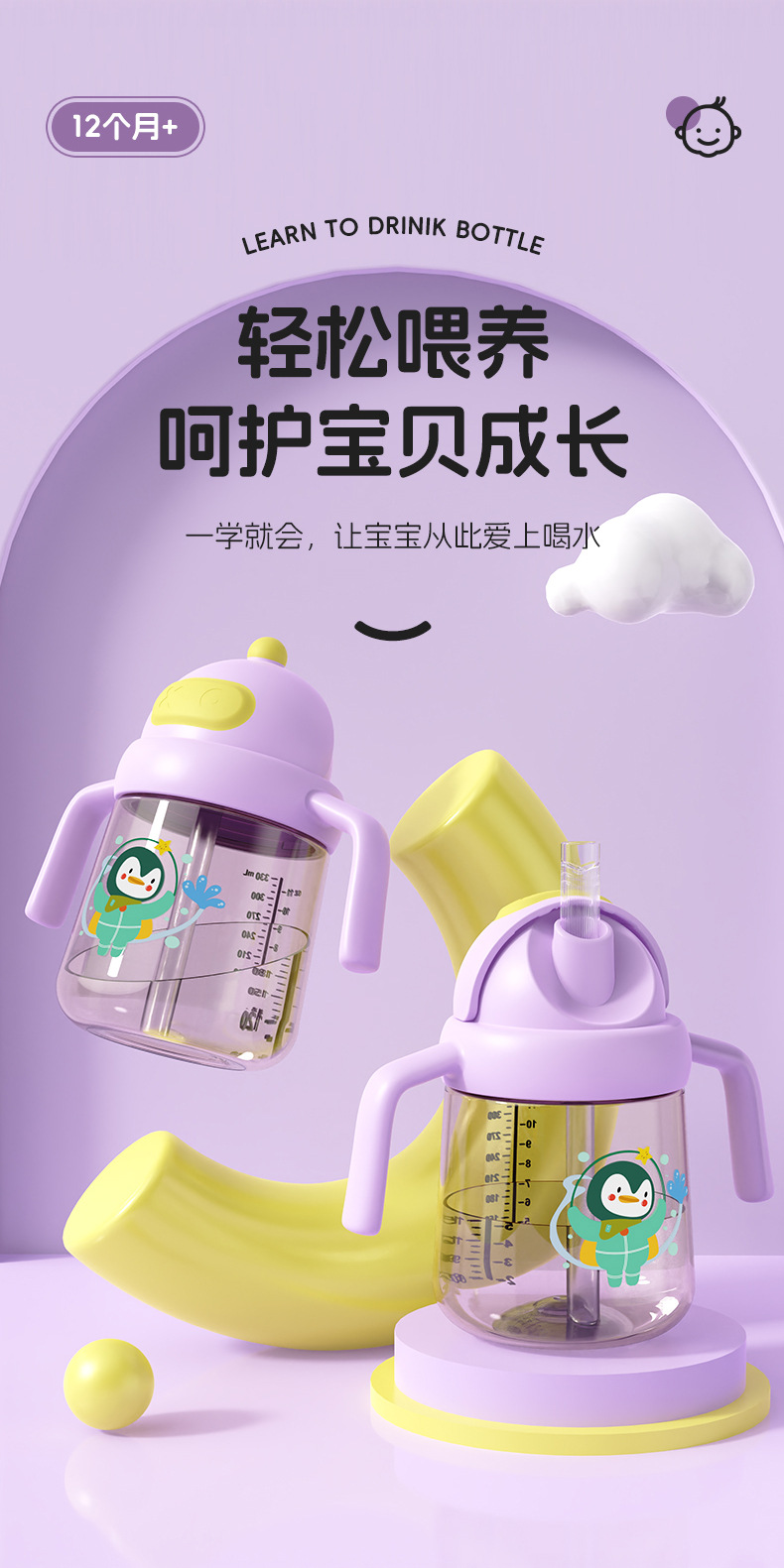 Comercio exterior especial taza de agua para niños bebés anti-asfixia taza de bebés pingüinos de dibujos animados taza de agua de PC taza de bebida directa