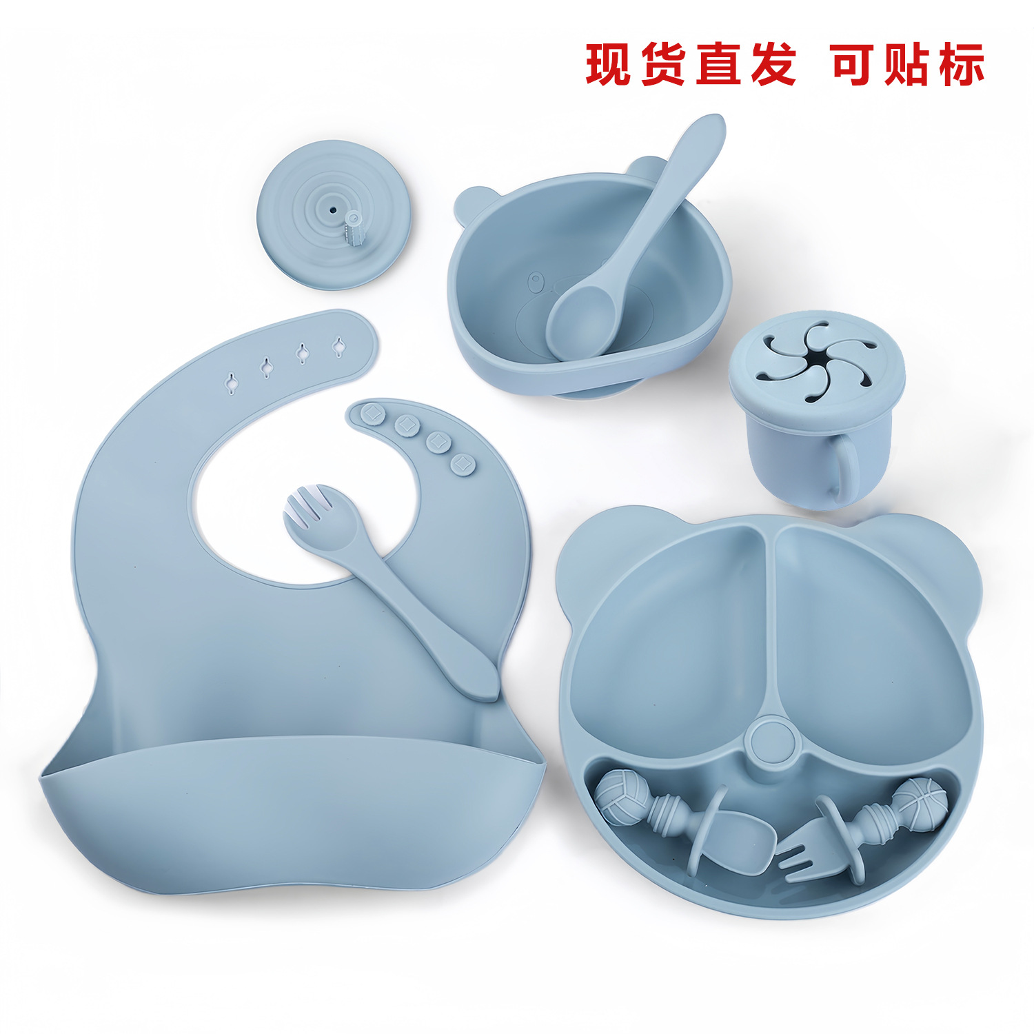 Plato de comedor de silicona para bebés cuchara de cocina de cocina cuchara de cubano infantil cubiertos de comedor set de platos de alimentos suplementarios para madres y bebés