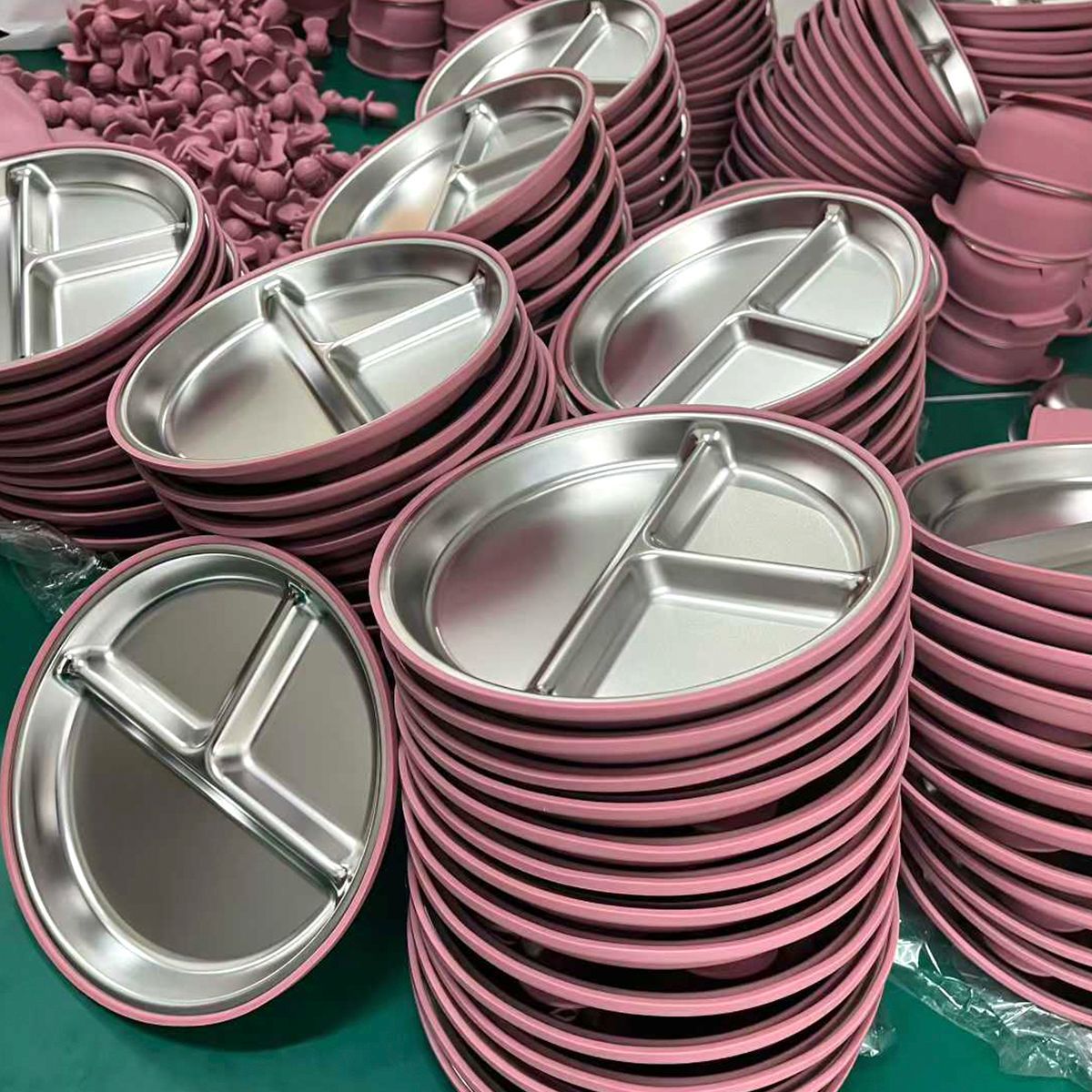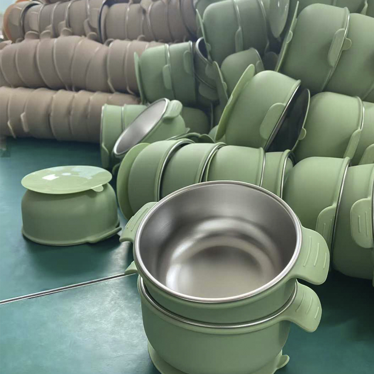Platos de acero inoxidable para niños cubiertos de alimentos suplementarios platos de silicona cucharón conjunto de cuenco procesamiento de fábrica transfronteriza