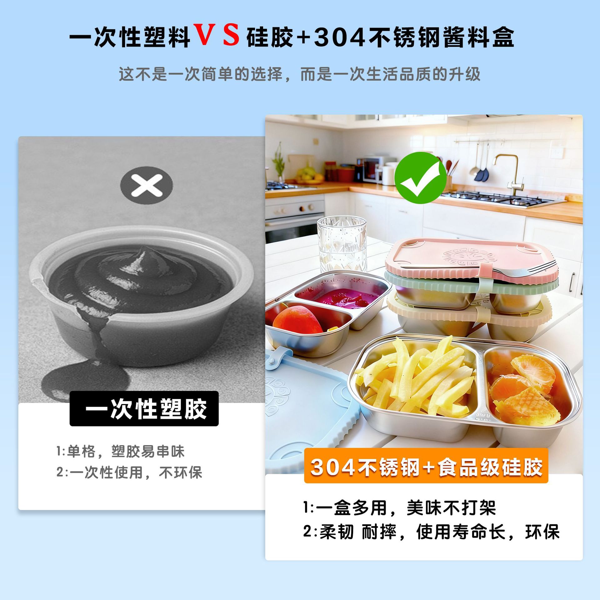 contenedor de bocadillos de silicona caja de conservación de bocadillos de silicona 304 caja de salsa de acero inoxidable