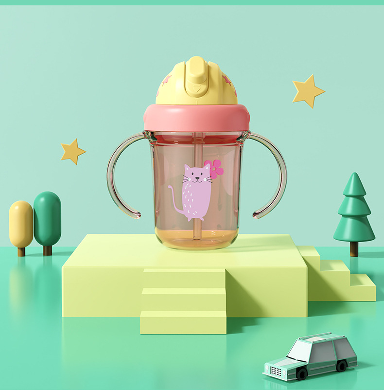 Taza de agua para niños taza de paja de plástico de gran capacidad para bebés beber taza de agua portátil a prueba de fugas taza de verano al por mayor