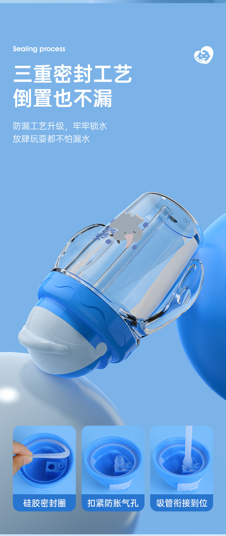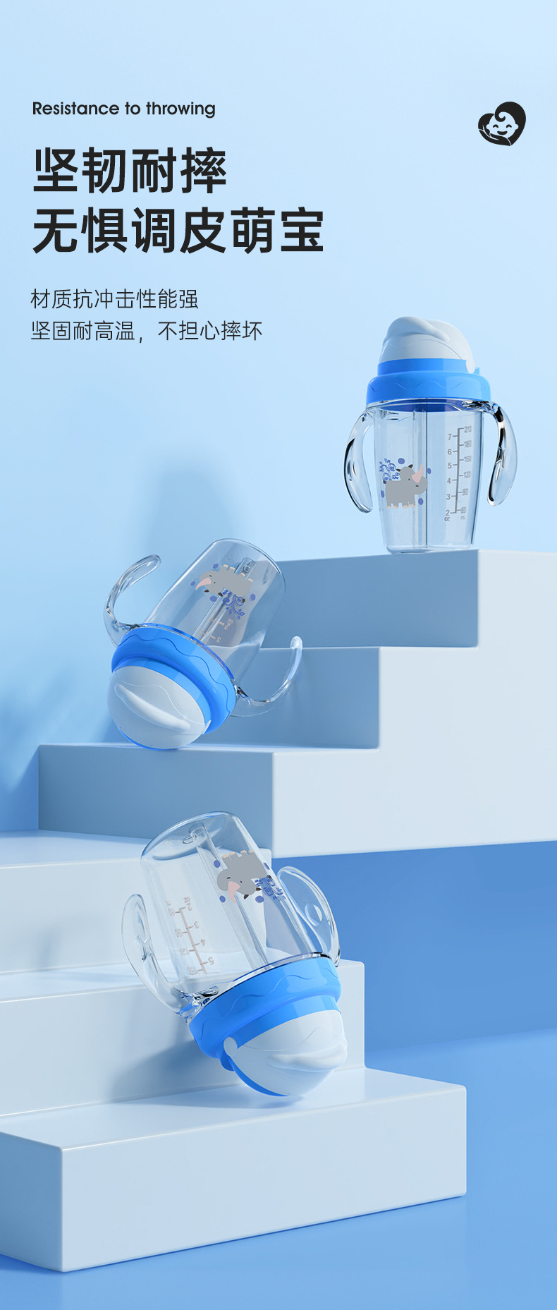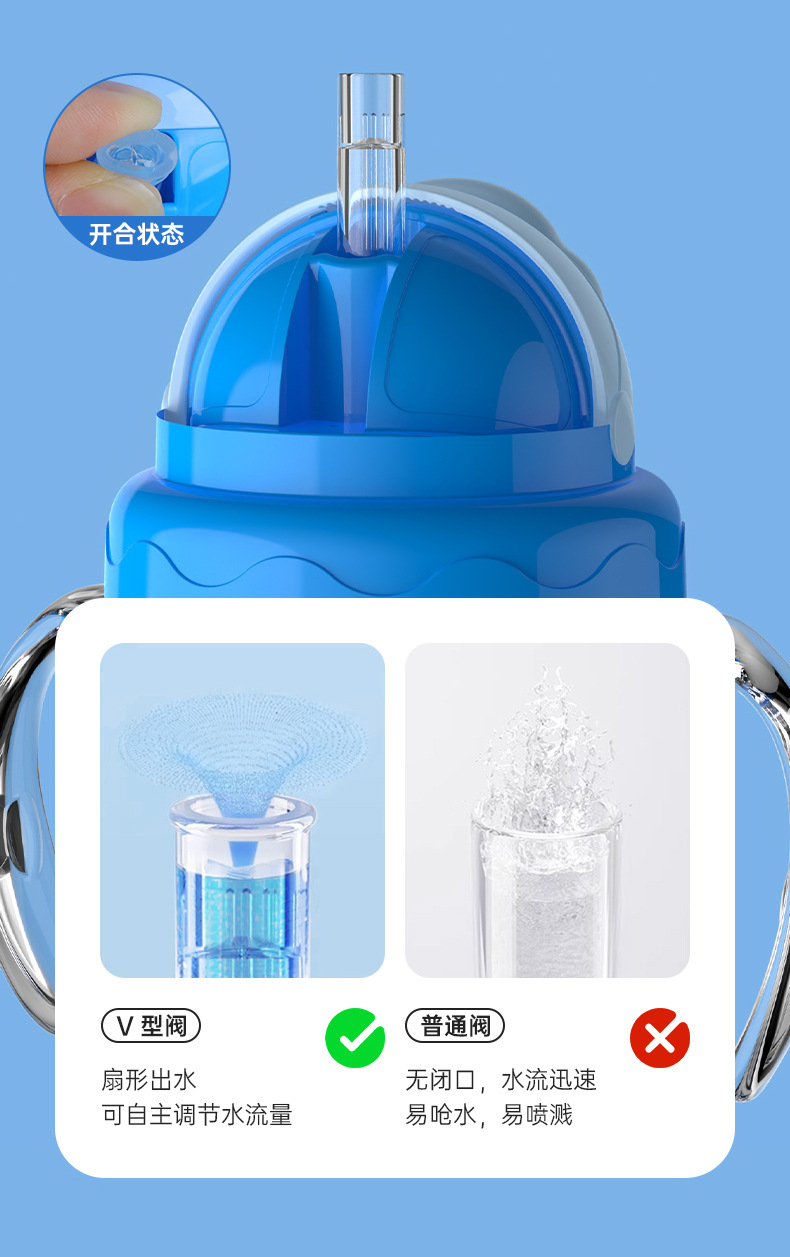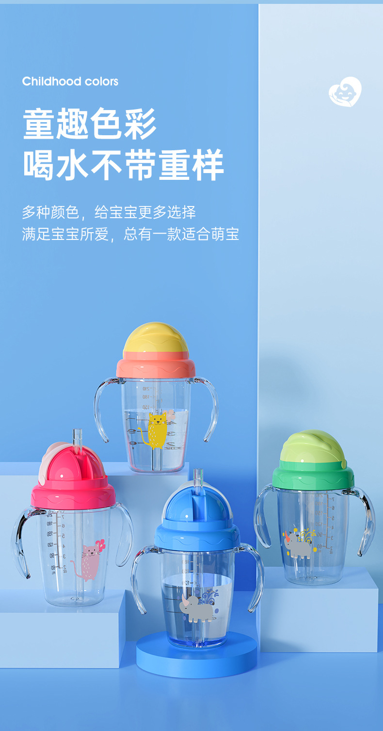 Taza de agua para bebés de dibujos animados, taza de bebés a prueba de fugas, taza de agua a prueba de fugas con mango, taza de bebida directa al por mayor