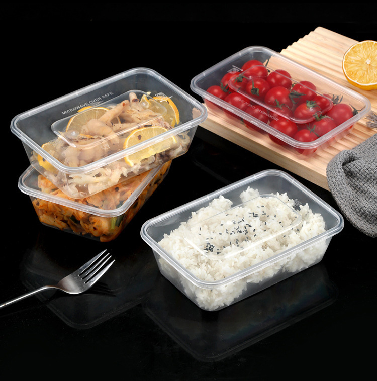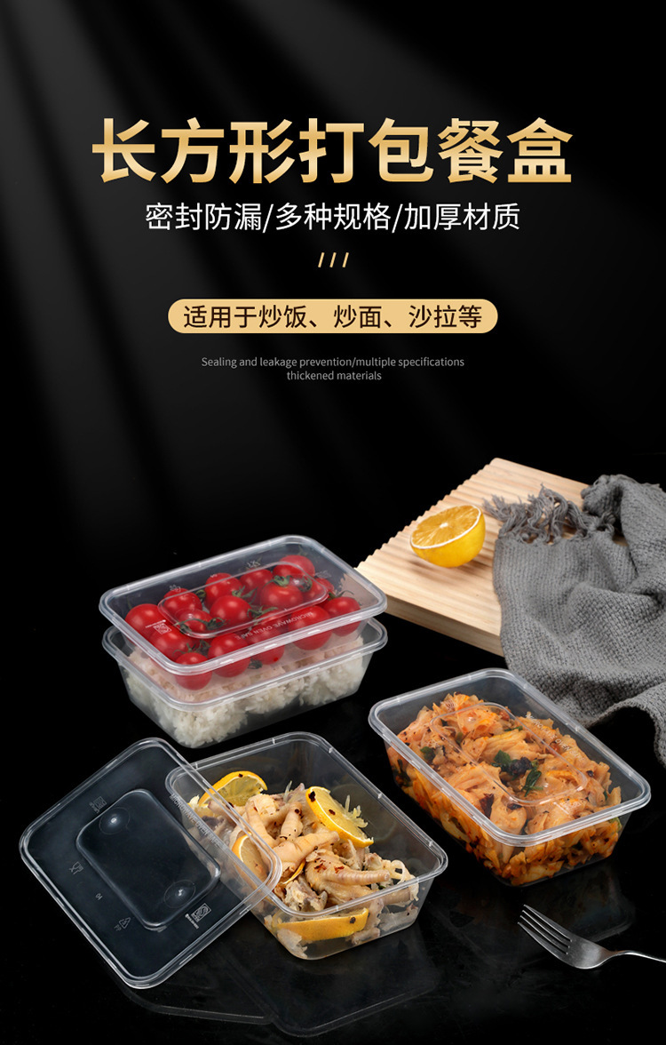 Fiambrera desechable caja de almuerzo de plástico redonda rectangular para llevar vajilla comida rápida caja de embalaje gruesa transparente con tapa