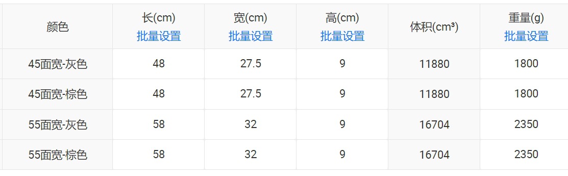 | Color | 45 lados ancho - gris, 45 lados ancho - marrón, 55 lados ancho - gris, 55 lados ancho - marrón |