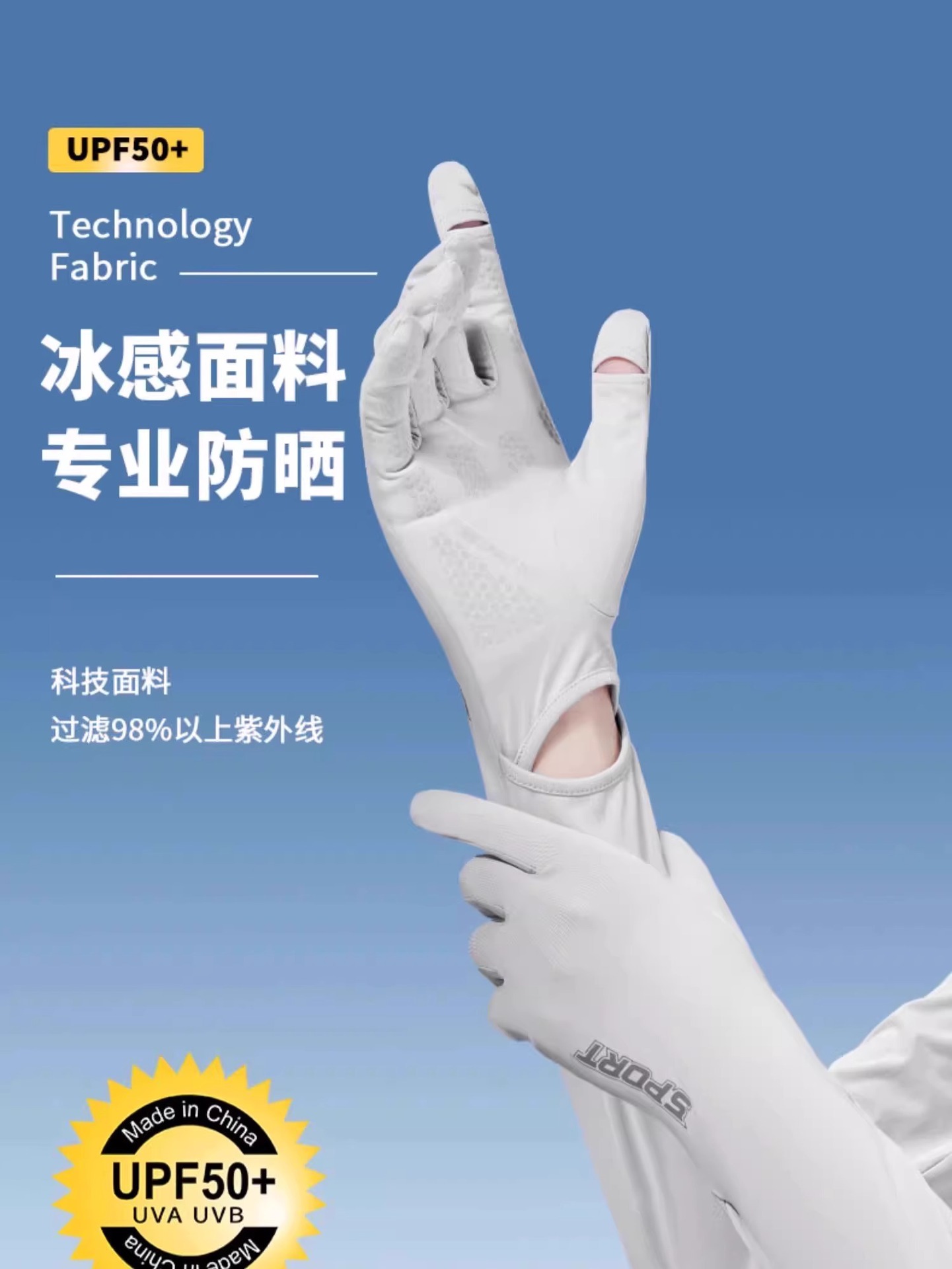 Nueva manga de hielo de nylon protector solar para montar al aire libre anti-UV de hielo de seda de manga de verano larga abertura guante protector solar