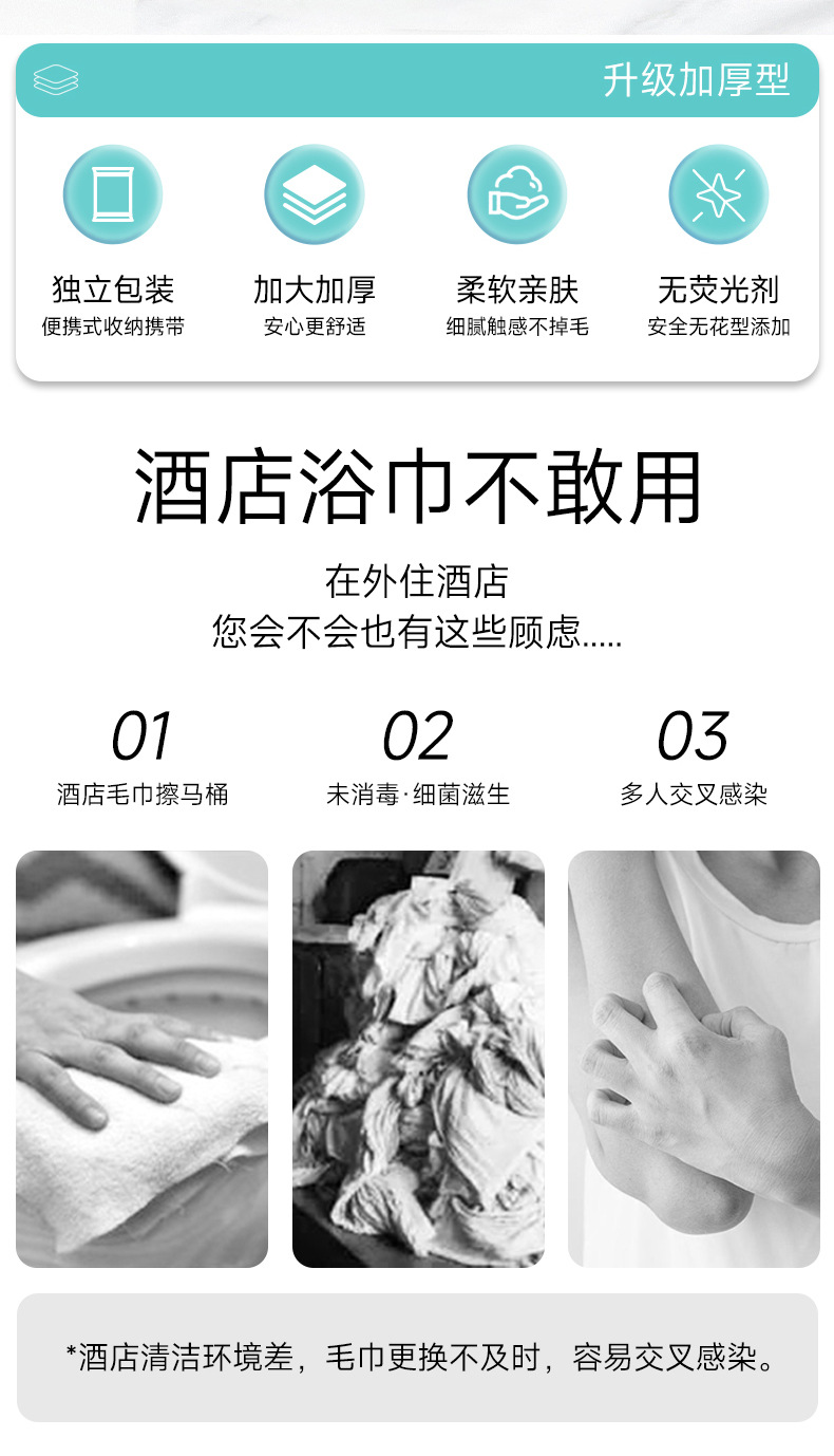 Toalla de baño desechable, toalla de baño desechable, embalaje independiente especial para hotel de viaje portátil, toalla de baño desechable