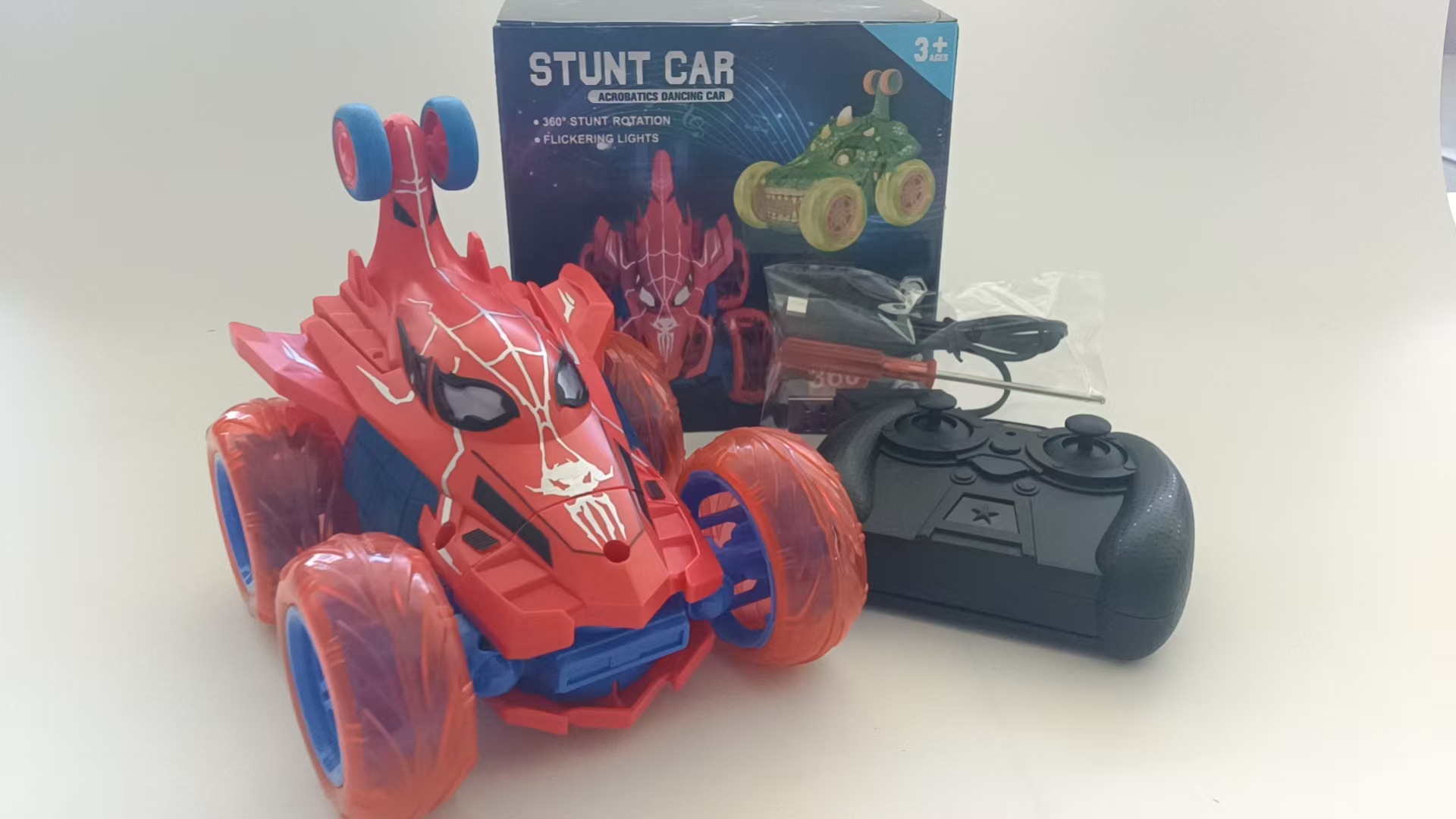 Coche de control remoto infantil transfronterizo Spider 2.4G con luces, camión volquete todoterreno con giro de 360 grados, juguete para niños.
