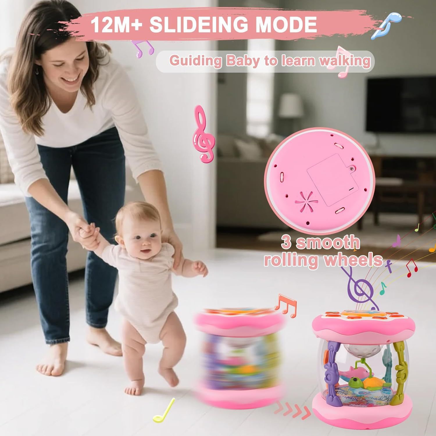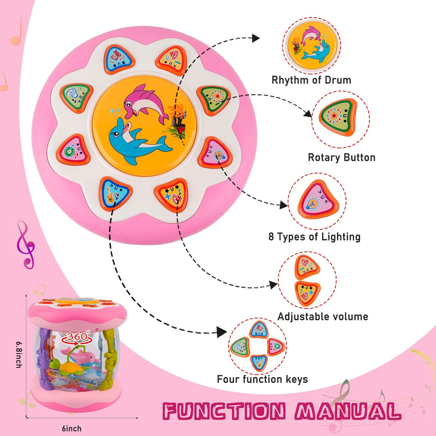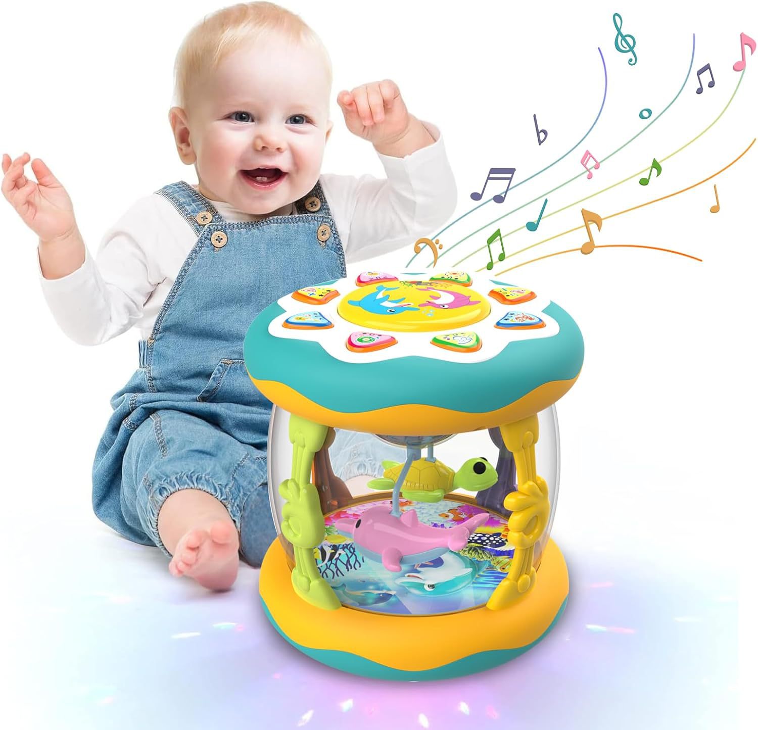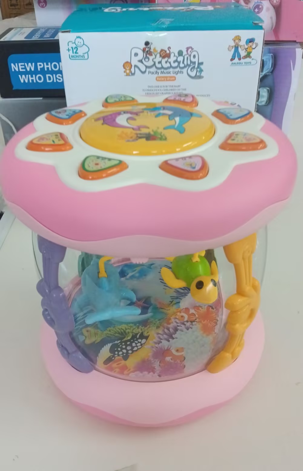 Amazon exportación de bebés bater bater baterías de mano baterías de luces transfronterizas música juguetes para bebés mar giratorio baterías de baterías de tambores