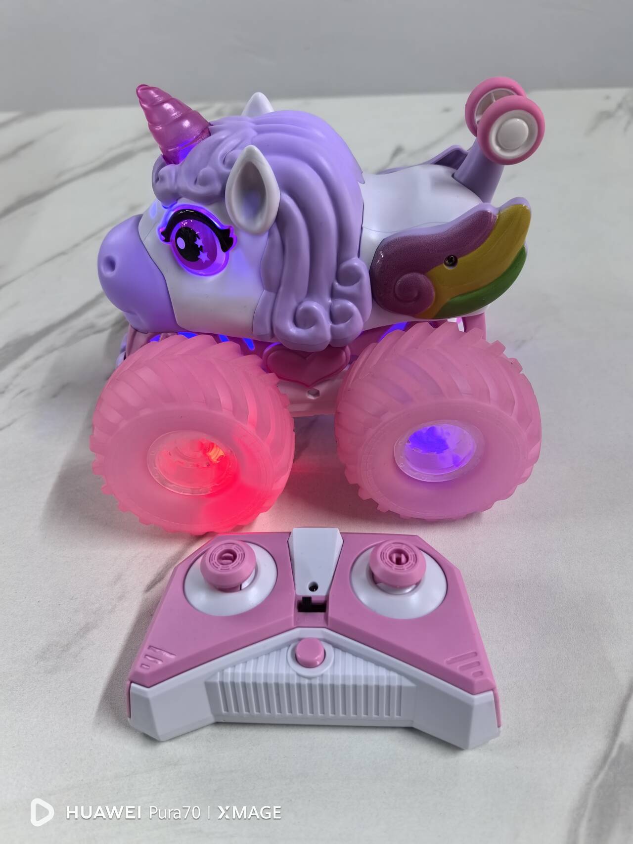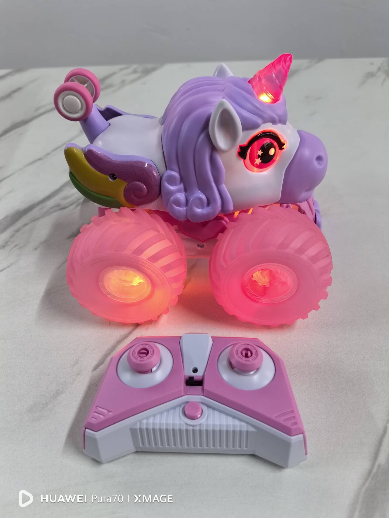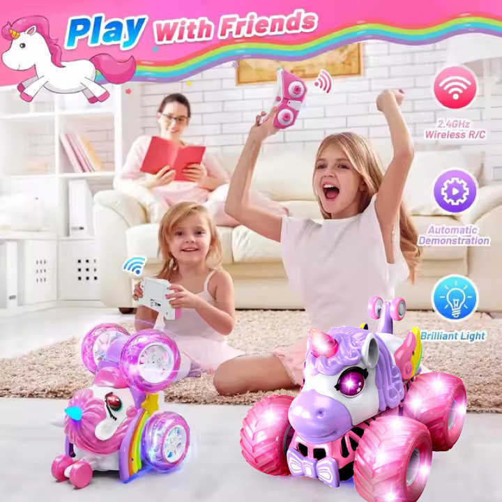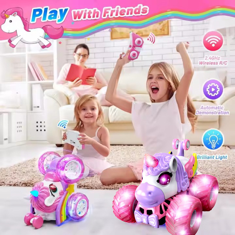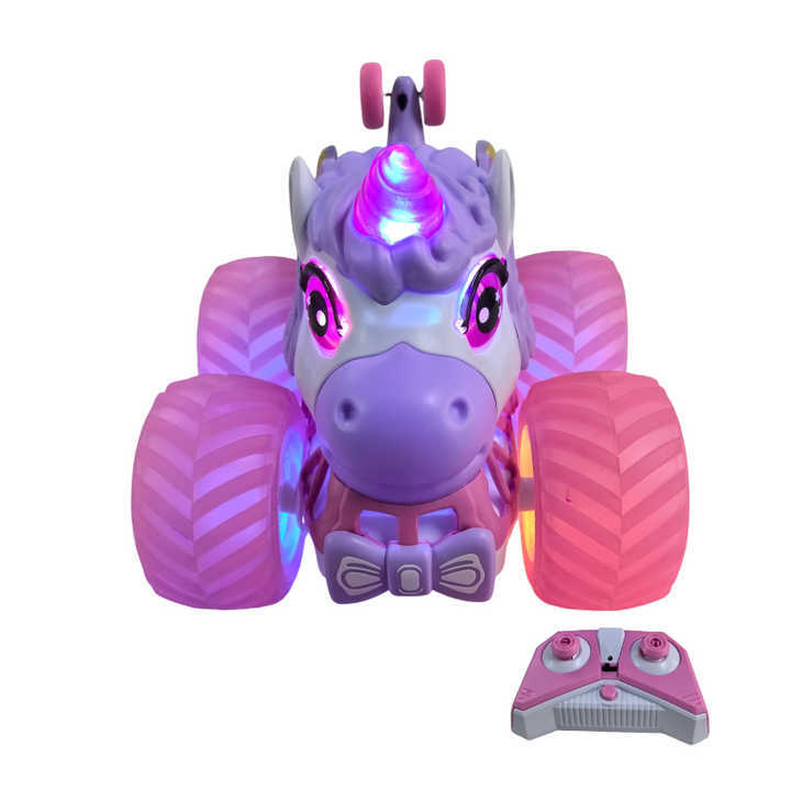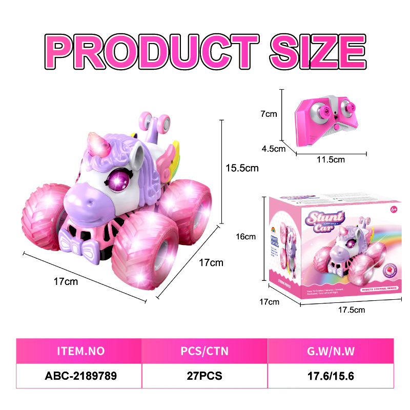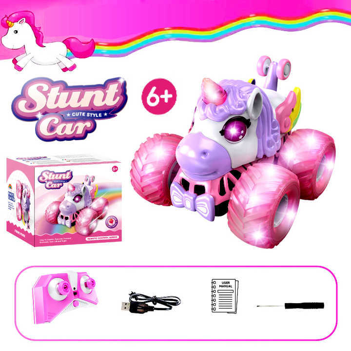 Camión volcador todoterreno con luces de colores y música 2.4G, vehículo de acrobacias de 360 grados, coche eléctrico de control remoto de unicornio de doble cara para uso transfronterizo