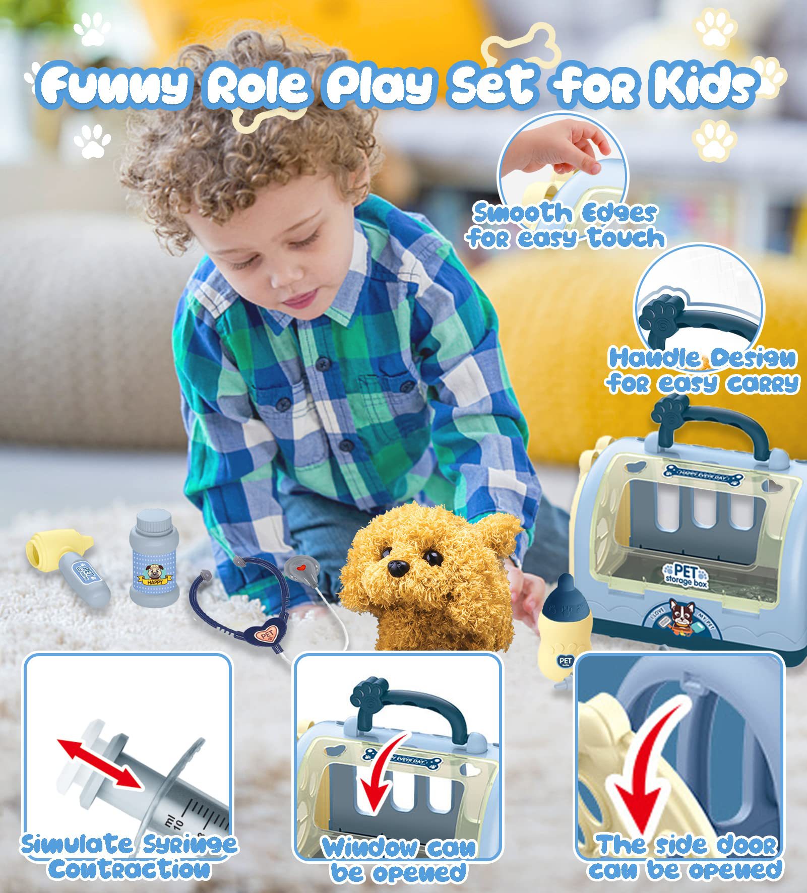 Hombres y niñas transfronterizos criando mascotas simulación de dibujos animados peluche perros perros perros casa de animales juegos para niños en casa
