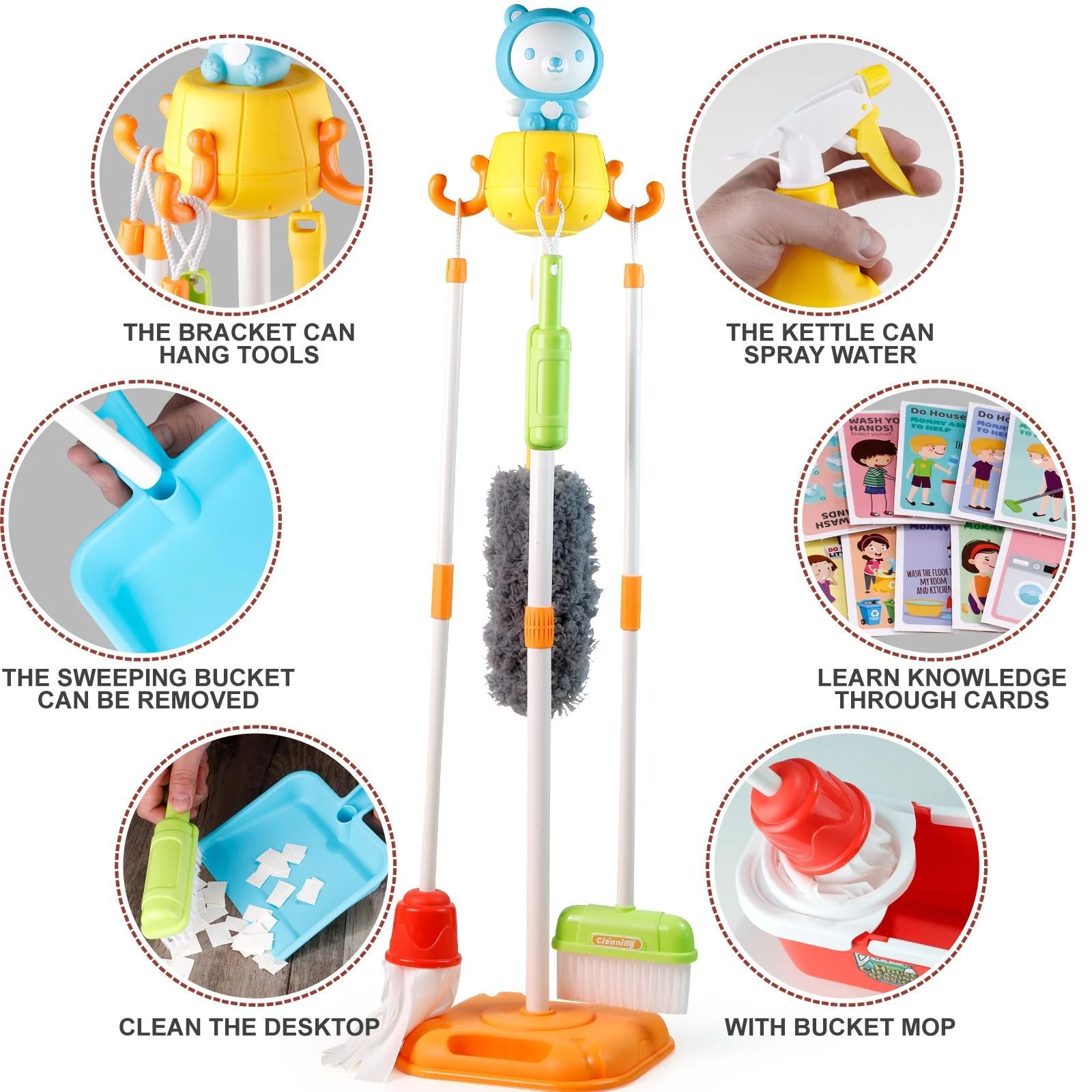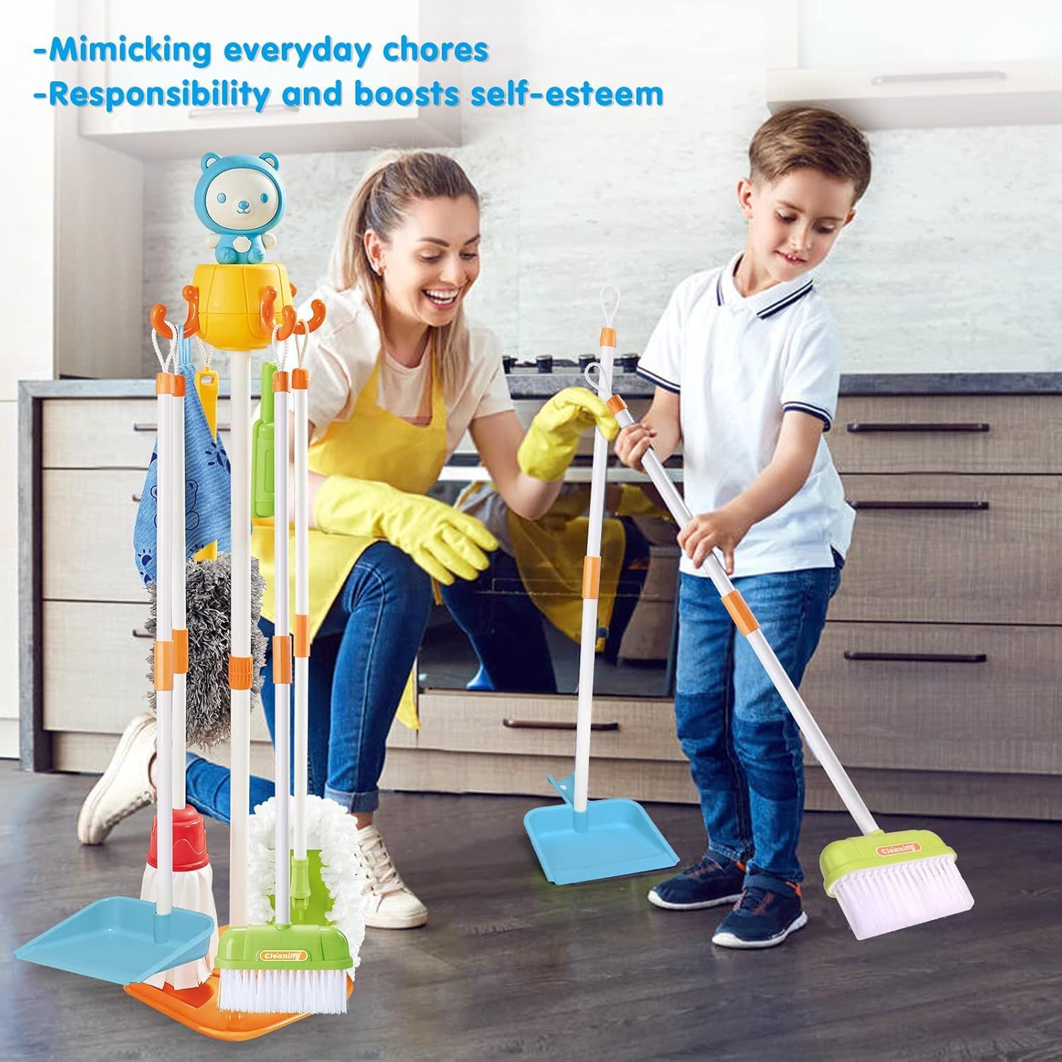Juguetes de educación temprana para niños, herramientas de limpieza doméstica de simulación de limpieza doméstica
