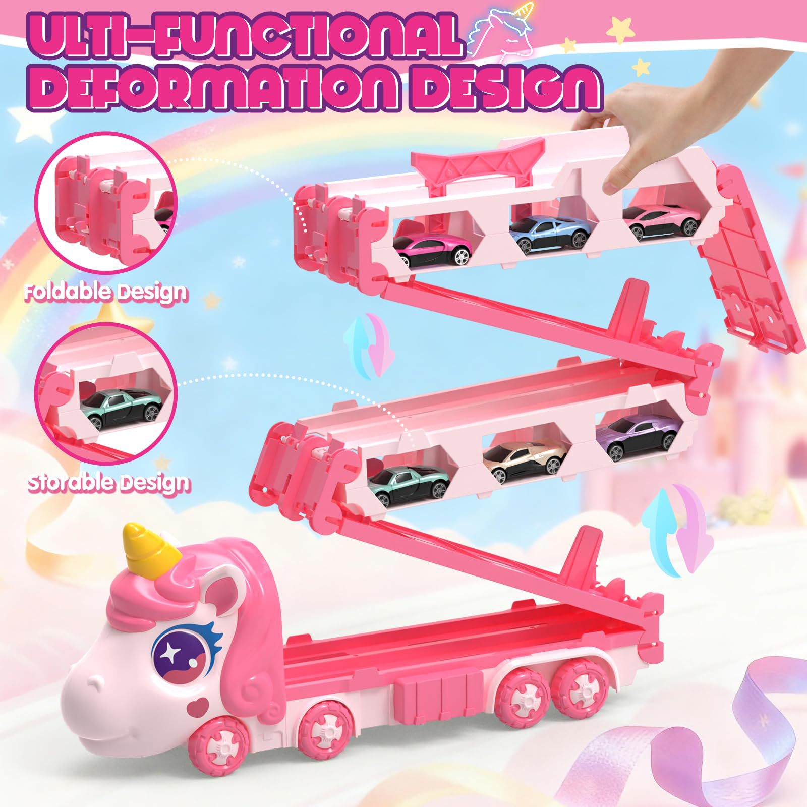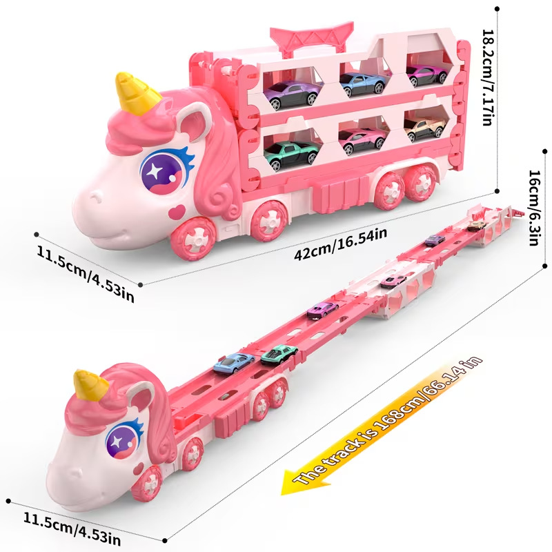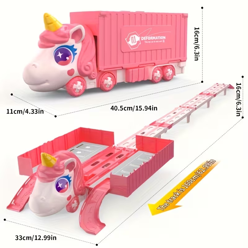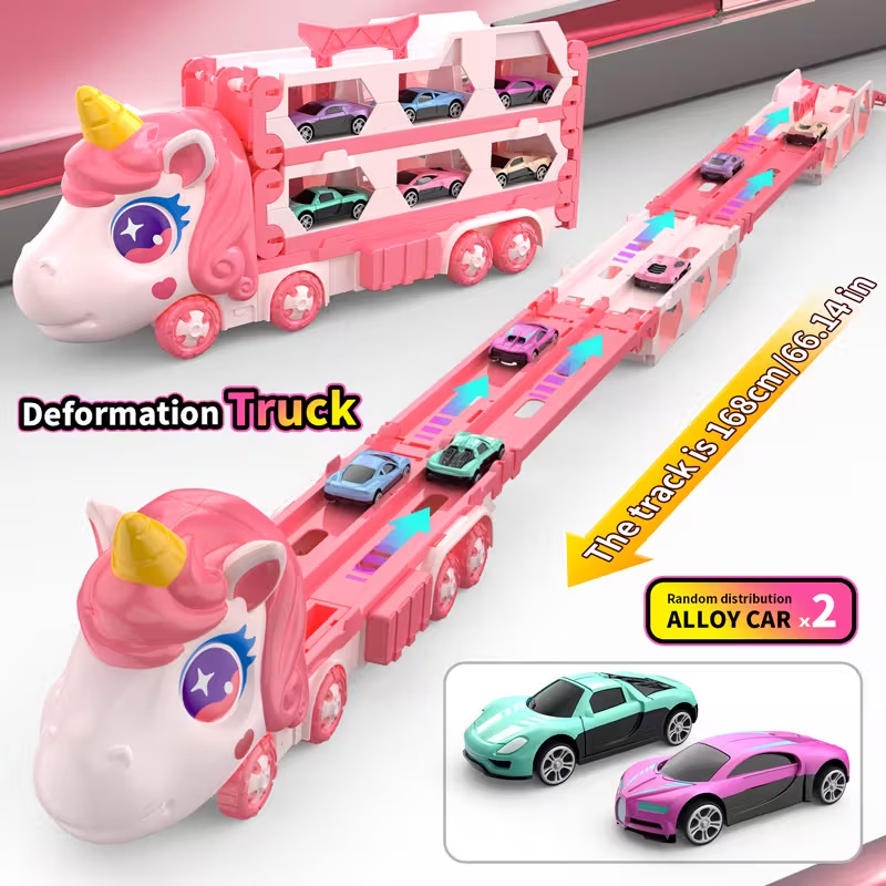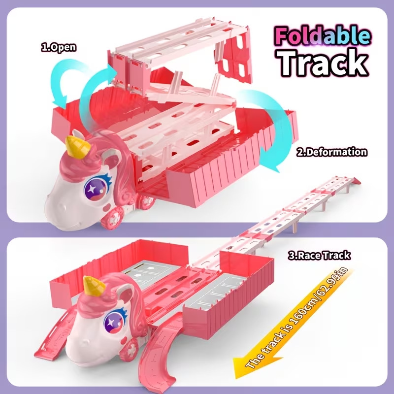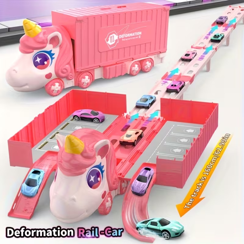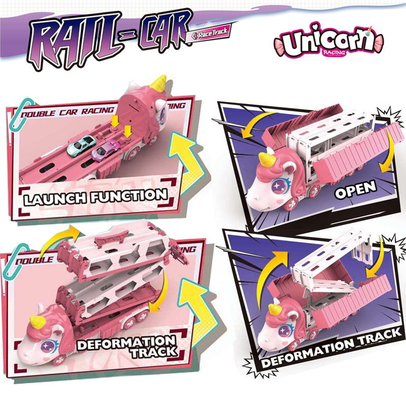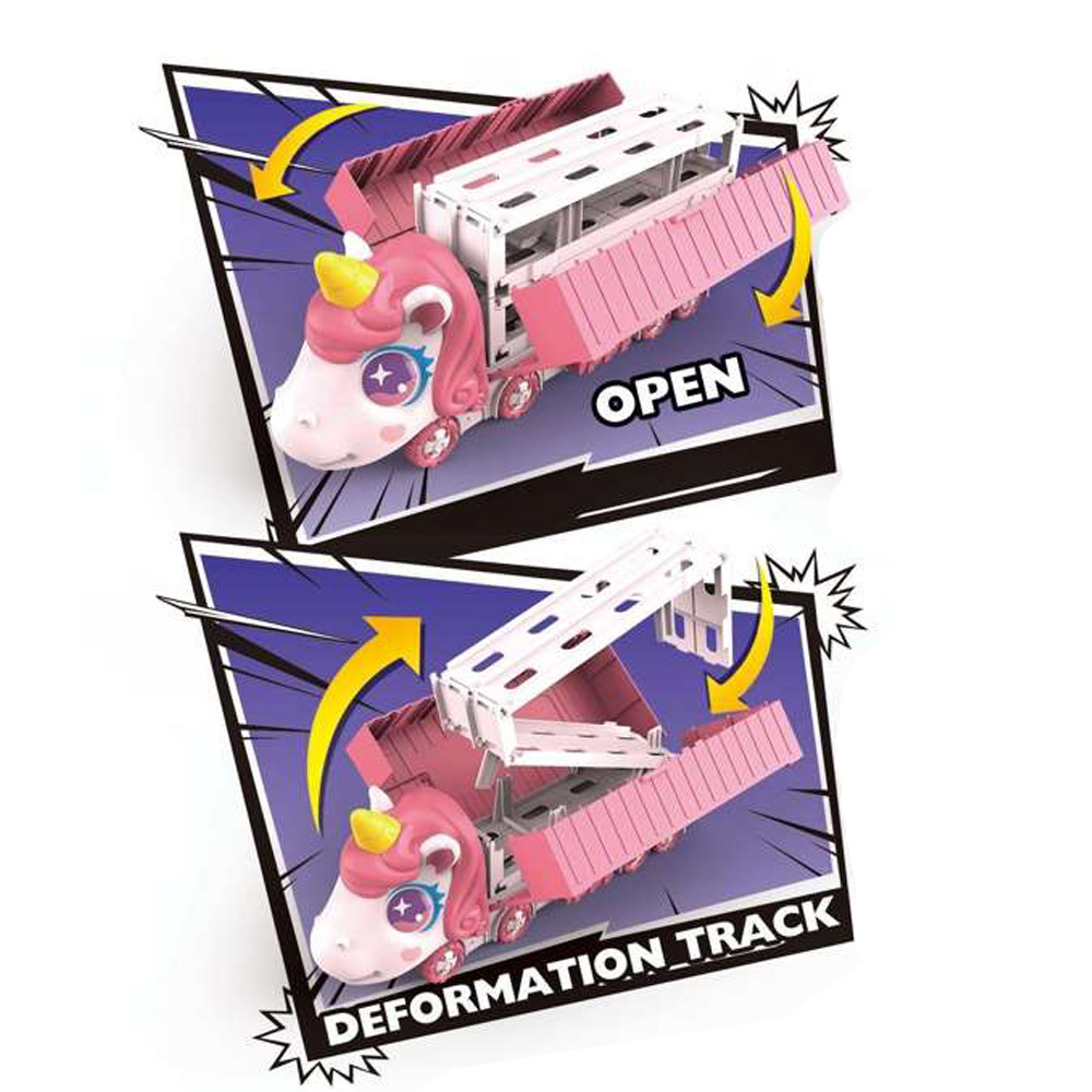 Nuevos productos infantiles catapulta deslizante contenedor deformación camión plegable unicornio transfronterizo vagón ferroviario juguetes interactivos para niños