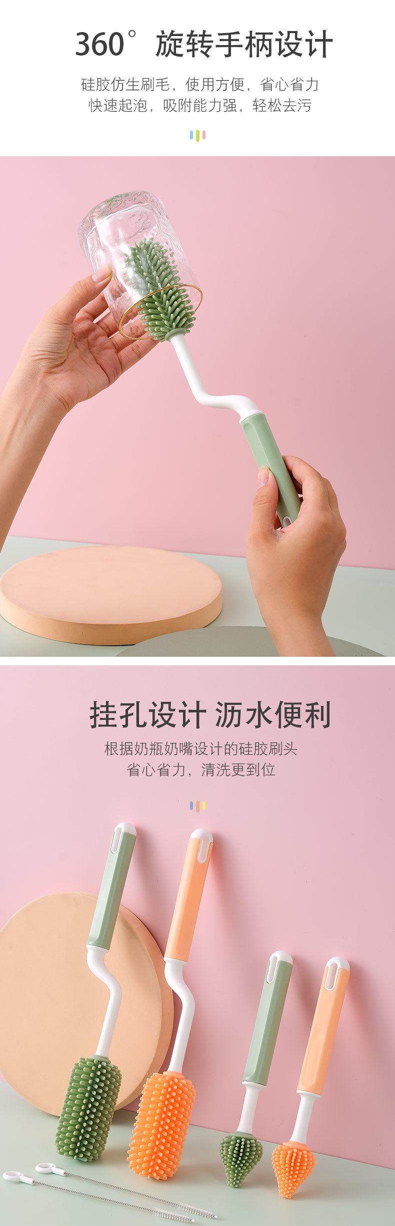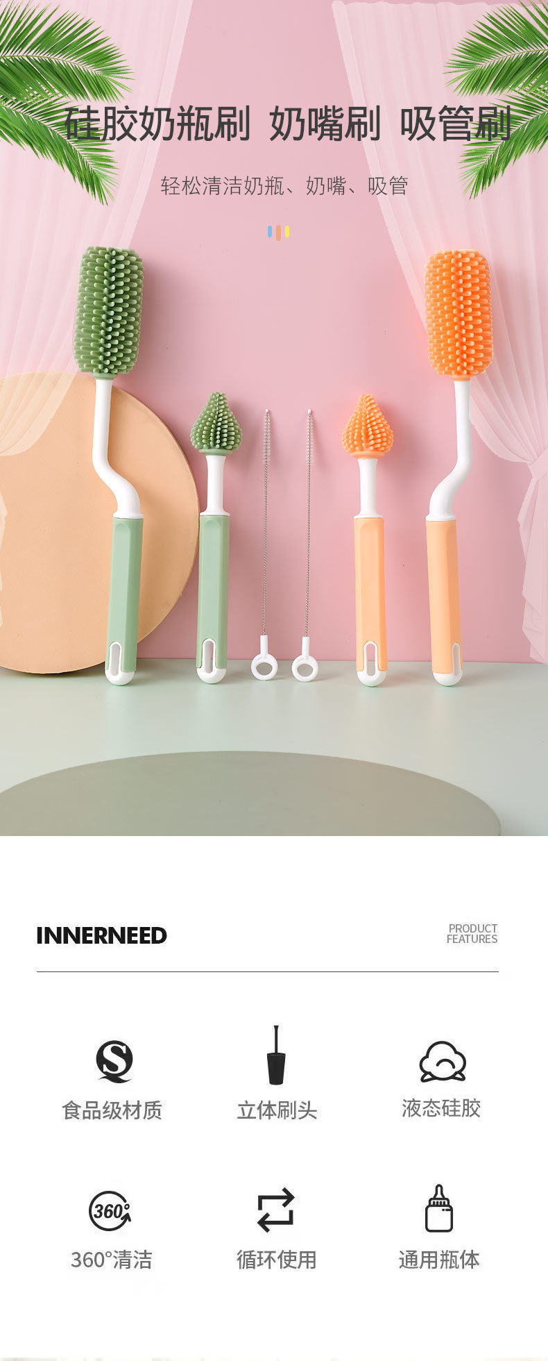 | Colores | Juego de 2 piezas de cepillo para biberón naranja,Cepillo para biberón verde aguacate, cepillo para chupete, juego de 2 piezas,Cepillo para biberón color café cepillo para chupete juego de 2 piezas,Juego de tres piezas naranja,Juego de tres piezas verde aguacate,Juego de tres piezas de color café |