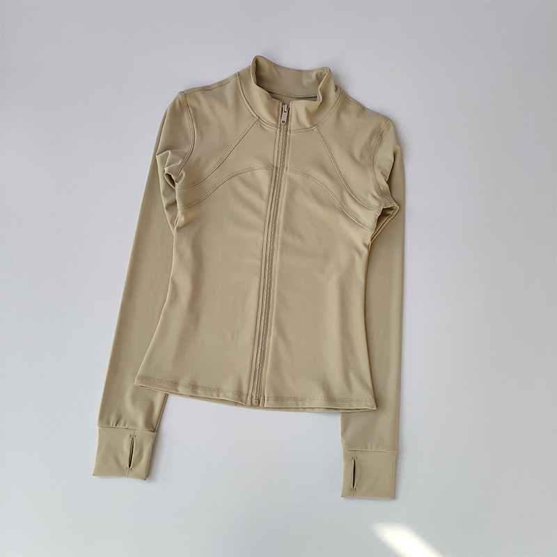 Chaqueta deportiva de otoño y invierno de cuello vertical de mujer chaqueta de fitness pantalones de entrenamiento de entrenamiento de corrida de la mañana de red red de goma delgada ropa de yoga con cremallera