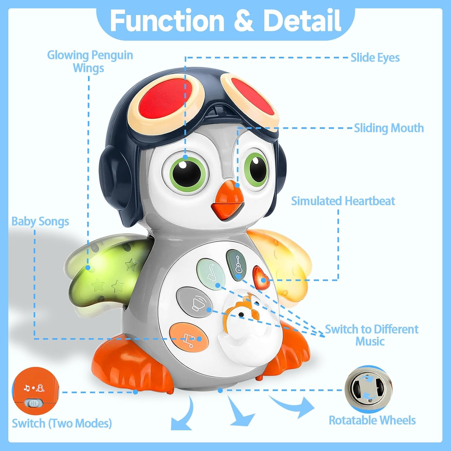 Transfronterizo Chenghai eléctrico universal swing pingüino juguetes musicales iluminación de la enseñanza temprana máquina de historias juguetes para niños al por mayor